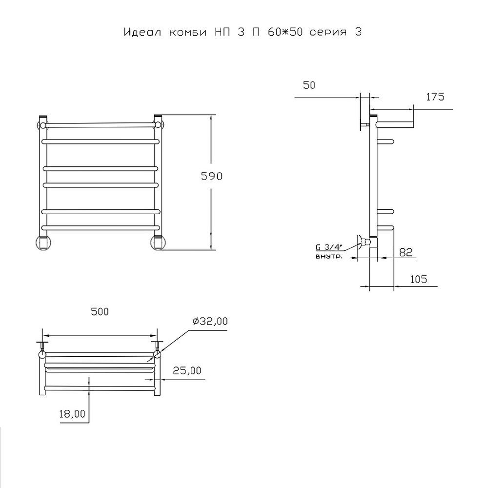 —Полотенцесушитель водяной Тругор Идеал Комби Идеал/комби3/нп6050П 55х60 хром