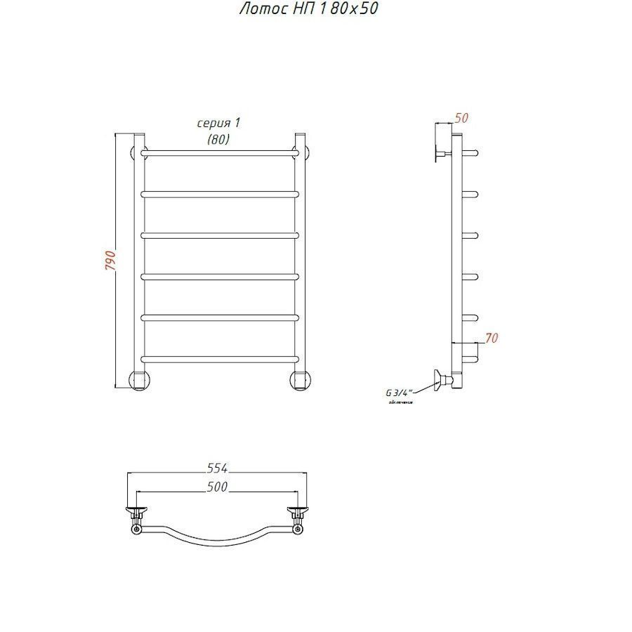 —Полотенцесушитель водяной Тругор Лотос Лотос1/нп8050 55х80 хром