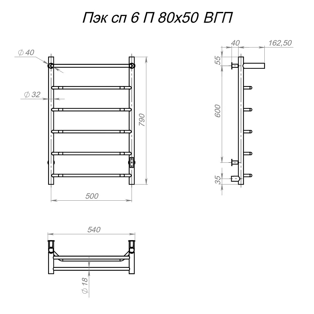 —Полотенцесушитель Тругор Вектор Пэк сп Пэксп6П/8050ор_стВГП 53х80 электрический оружейная сталь