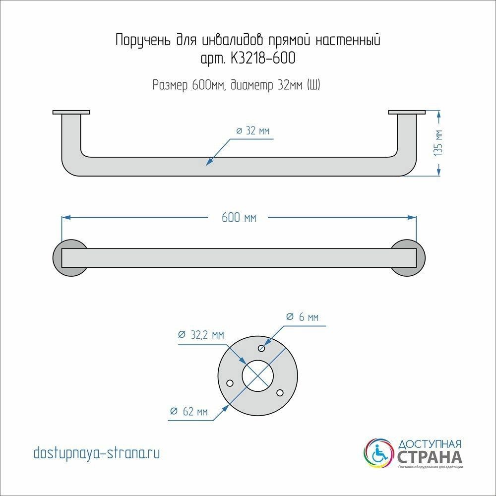 —Поручень для ванной прямой из нержавеющей стали Dstrana 3218-600