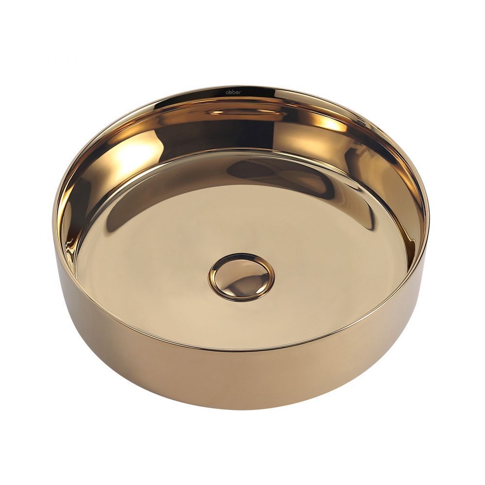 —Раковина из сантехнического фаянса Abber BEQUEM AC2109GG 40х40 накладная цвет золото без отверстий под смеситель