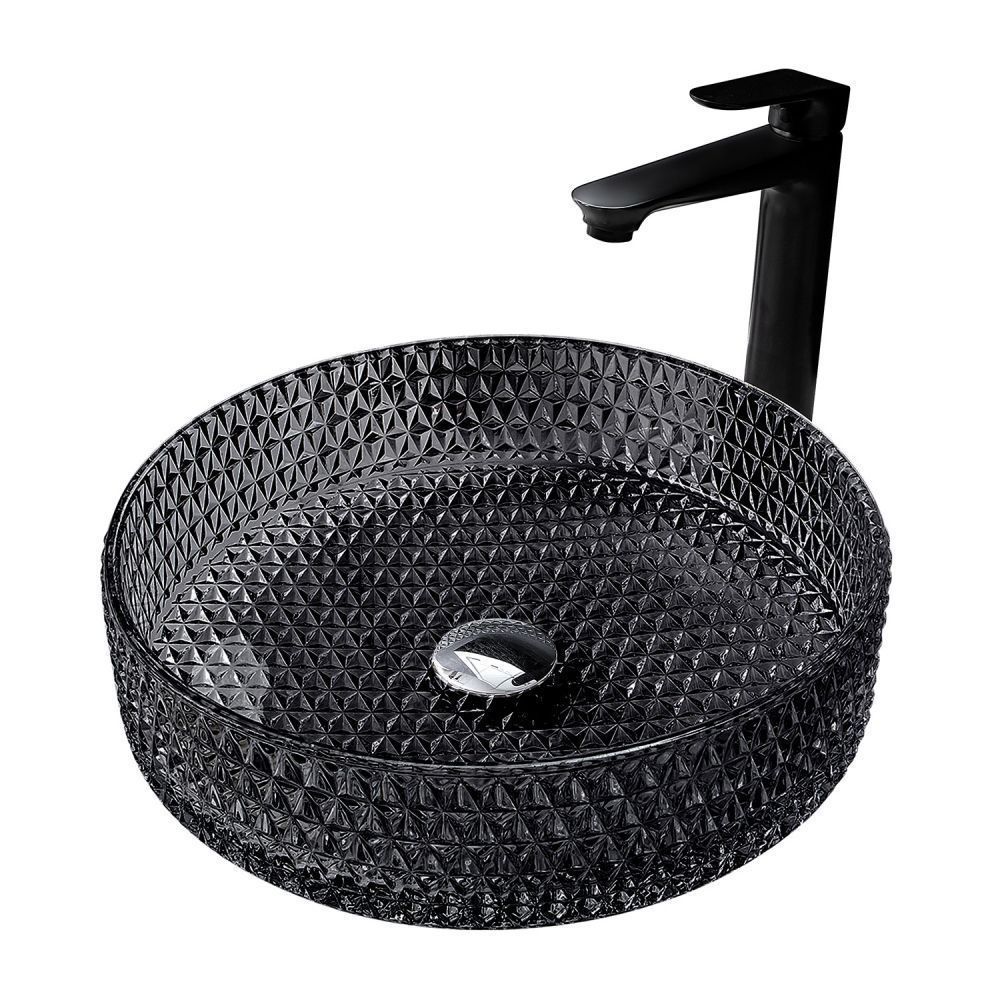 —Раковина стеклянная Abber GLAS AK2301B 40х40 накладная цвет черный без отверстий под смеситель