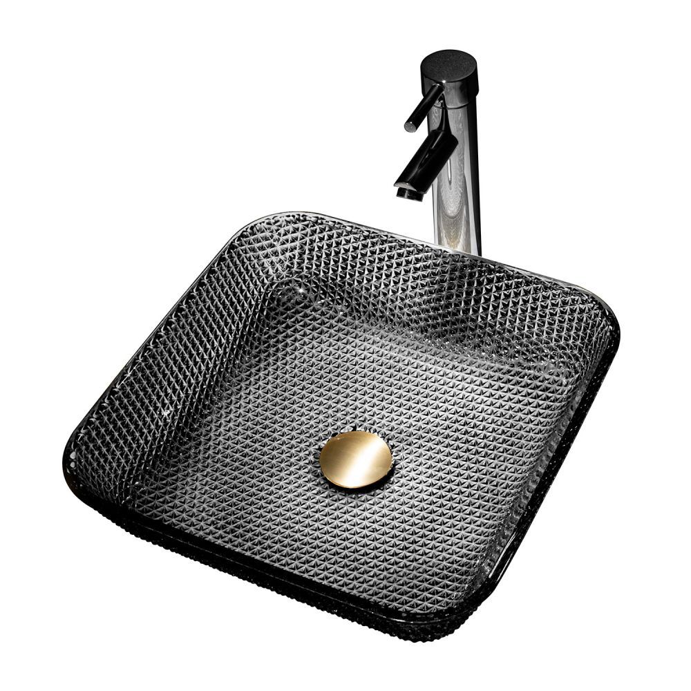 —Раковина стеклянная Abber GLAS AK2311B 40х40 накладная цвет черный без отверстий под смеситель