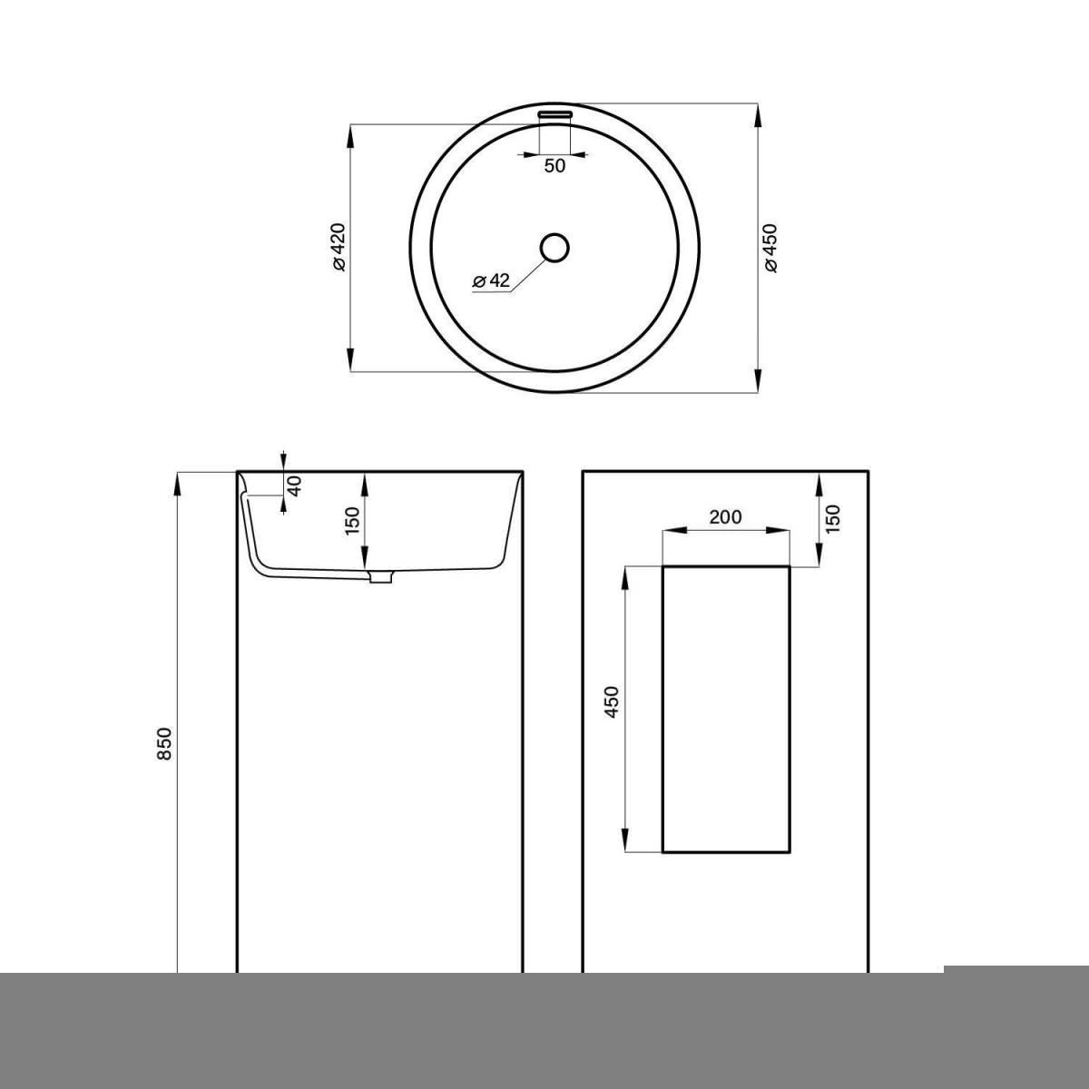 Свободная пристенная установка раковины предполагает водоотведение в стену или в пол. Универсальность монтажа обеспечивает наличие в корпусе бокового (заднего) технологического отверстия для беспрепятственного подвода и отвода воды в стену, что актуально, как правило, для многоэтажных зданий, и отверстия снизу для водоотвода в пол, что оптимально для частных домов. Цельный корпус идеально скроет все инженерные коммуникации.