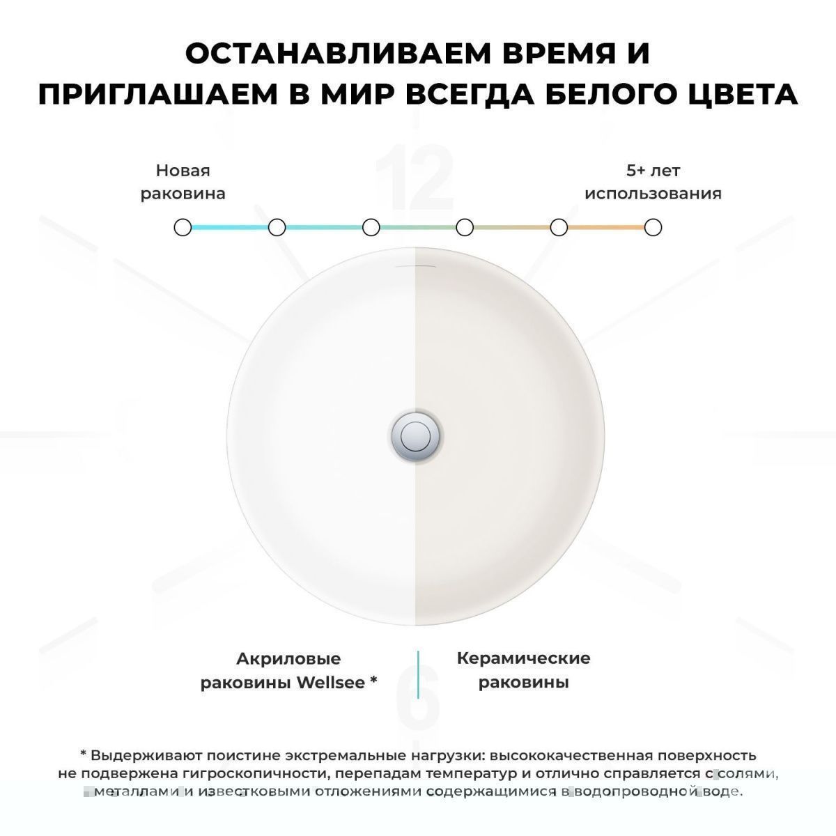 Неоспоримые эксплуатационные характеристики раковин Wellsee — результат отлаженного процесса производства с применением высококачественного сырья. Акриловый лист, полученный в результате высокотемпературной прессовки гранул ПММА, помещают в роботизированную форму с вакуумом, где нагревают и под давлением заполняют матрицу будущего изделия: без образования пустот, пузырьков и трещин. На этапах армирования и сцепления корпуса с чашей используется стеклоровинг и инновационная композиционная смесь, благодаря которой изделие приобретает высокую ударную вязкость и устойчивость к деформациям. Обработка раковины завершается сверлением технологических отверстий с последующей полировкой поверхностей и финишным окрашиванием для получения однородного покрытия без видимых стыков и швов, сохраняя эстетические и функциональные особенности продукции.