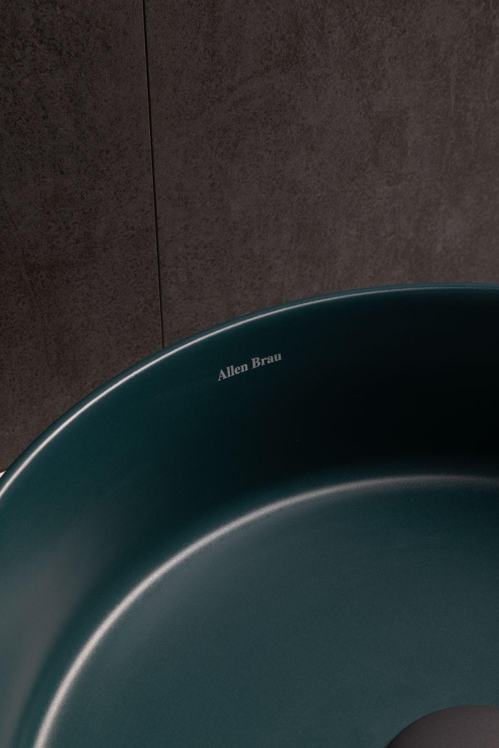 Накладная раковина для ванной комнаты Allen Brau Fantasy Line в цвете «Петроль» шириной 36 см изготовлена из качественной и прочной керамики, что обеспечивает надежность и устойчивость. Ее круглая форма придает интерьеру ванной комнаты изысканность и гармоничность. Раковина не имеет отверстия для перелива и отсутствует готовое отверстие под смеситель, что придает ей минималистичный и современный вид. Эта накладная раковина подойдет для тех, кто ценит простоту и элегантность. Ее универсальный дизайн легко впишется в различные стили интерьера ванной комнаты, придавая ему изысканность и стиль. Благодаря своей гармоничной форме и отсутствию лишних деталей, эта раковина будет служить не только функциональным, но и стильным элементом вашей ванной комнаты.