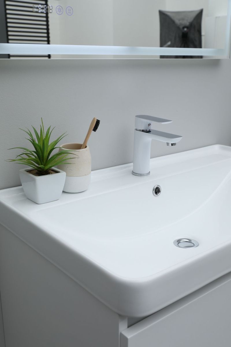 —Раковина керамическая Aquanet Ирис 00301805 80х50 полувстраиваемая цвет белый 1 отверстие под смеситель