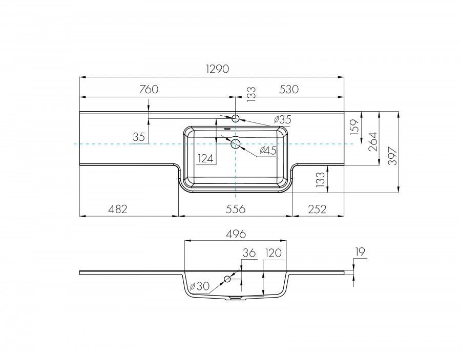 —Раковина из литьевого мрамора Aquaton Hotel 1A709931PI01P 129х41 подвесная цвет белый