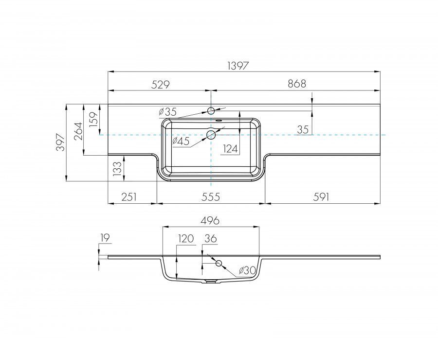 —Раковина из искусственного камня Aquaton Hotel 1A709631PI01L 140х40 подвесная цвет белый