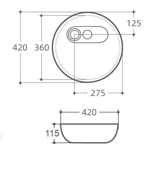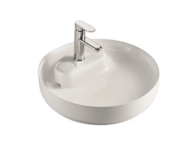 Раковина керамичекая накладная  для установки на столешницу с отверстием под смеситель c  переливом и донным клапаном