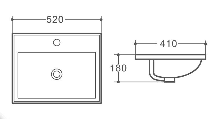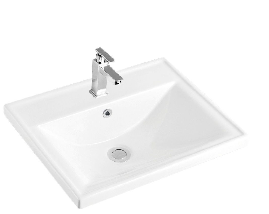 Раковина керамичеcкая полувстраиваемая  с отверстием под смеситель и  переливом