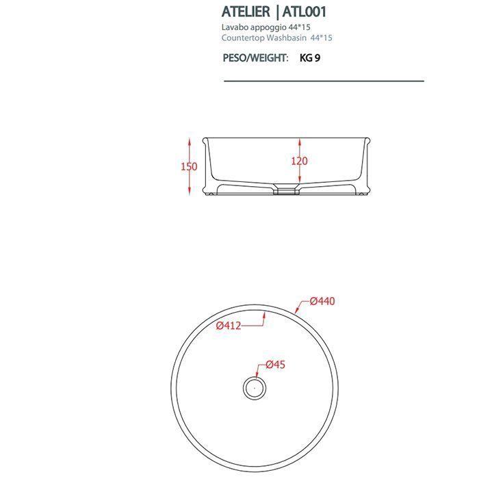 —Раковина керамическая Artceram Atelier ATL001 17 00 40х40 накладная цвет черный без отверстий под смеситель