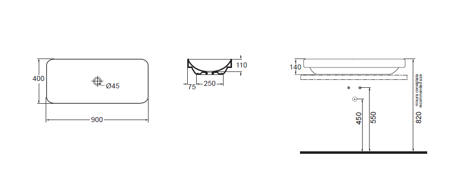 —Раковина из сантехнического фаянса Azzurra ELEGANCE ELLG090400S0BI/(ESO90 bi)*0 90х40 накладная цвет белый без отверстий под смеситель