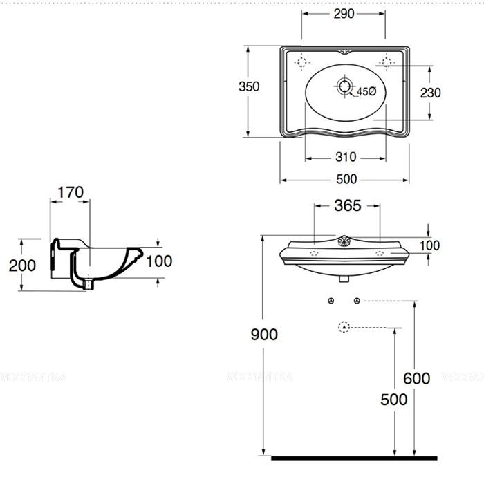 —Раковина из сантехнического фаянса Azzurra Jubilaeum JULS0503500MBI/(JUB200/50 bi)*1sx 50х40 подвесная цвет белый