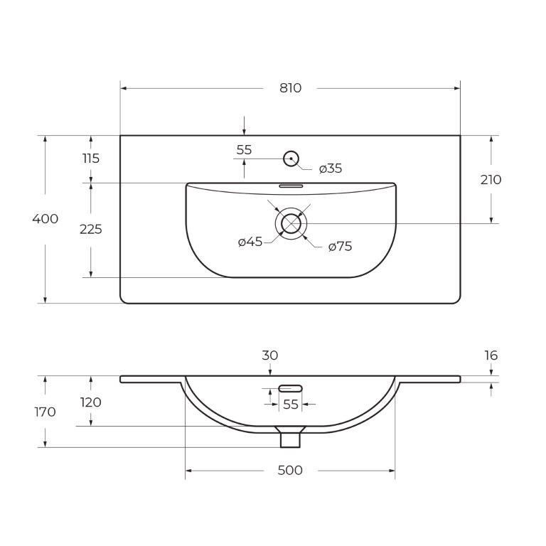 —Раковина керамическая BelBagno BB-8099-3-80 80х40 накладная цвет белый 1 отверстие под смеситель