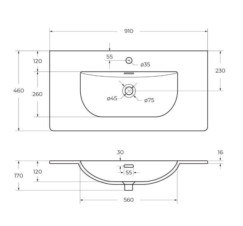 —Раковина керамическая BelBagno Uno BB-8099-90 90х50 накладная цвет белый 1 отверстие под смеситель