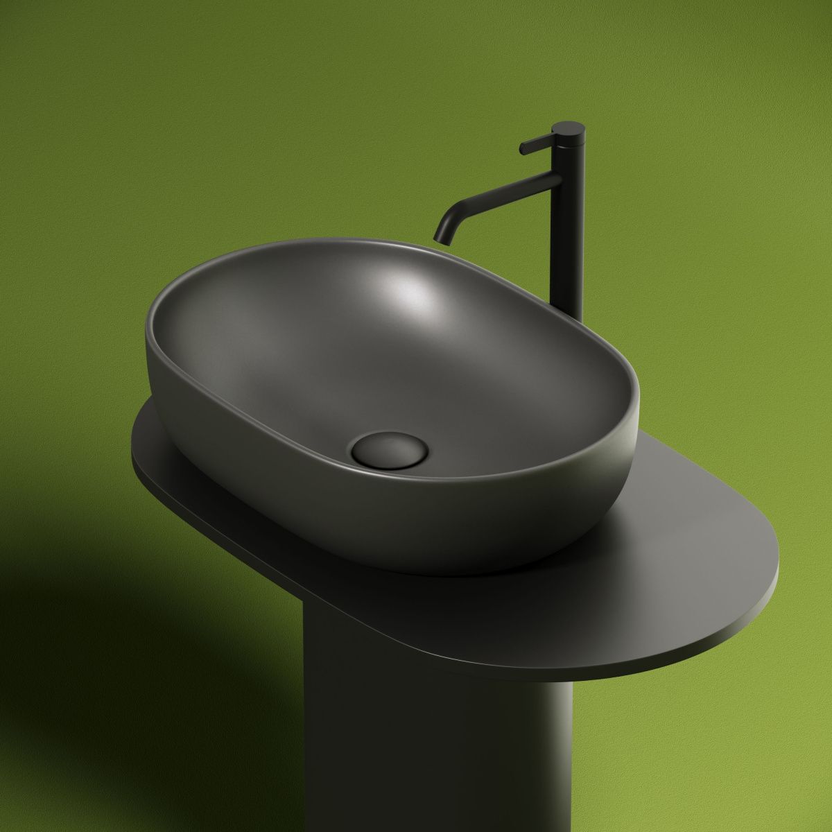 —Раковина из сантехнического фарфора Ceramica Nova ELEMENT CN6047MDH 60х40 накладная цвет черный без отверстий под смеситель