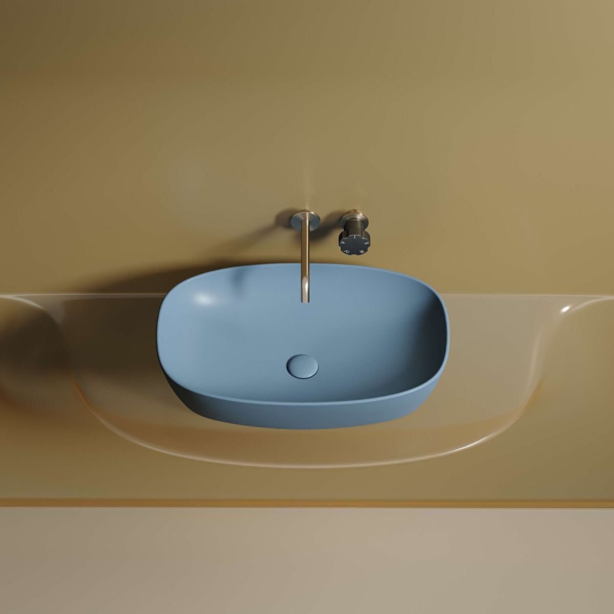 —Раковина из сантехнического фарфора Ceramica Nova ELEMENT CN6049ML 60х40 накладная цвет синий без отверстий под смеситель
