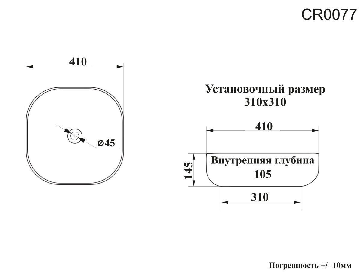 —Раковина из сантехнического фарфора Cerutti SPA CR0077 40х40 накладная цвет белый без отверстий под смеситель