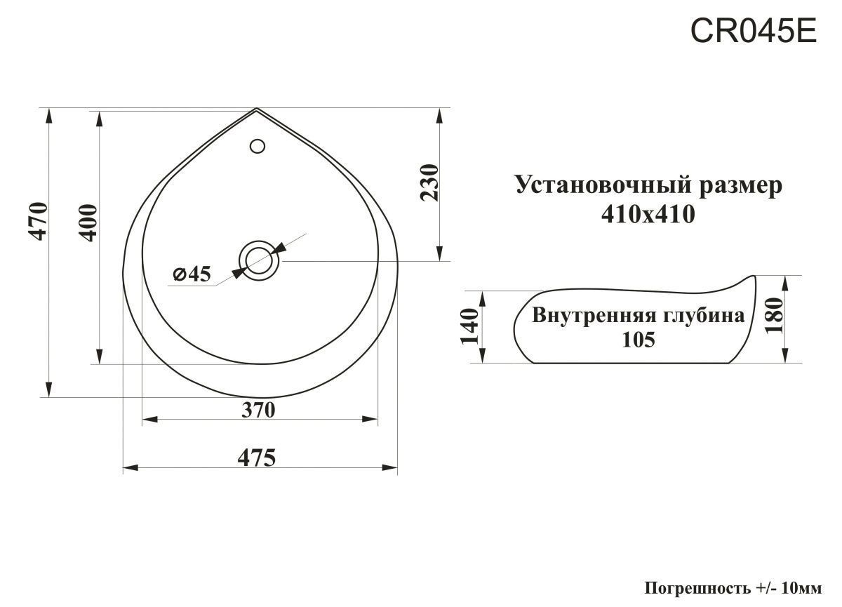 —Раковина из сантехнического фарфора Cerutti SPA CR045E 50х50 накладная цвет белый без отверстий под смеситель