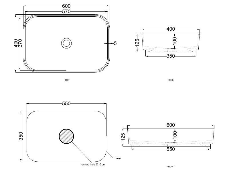 CIELO Shui Сomfort SHCOLAR60 Раковина накладная прямоугольная, без отверстий для смесителя, размер 60х40х12,5 см, цвет белый глянцевый.