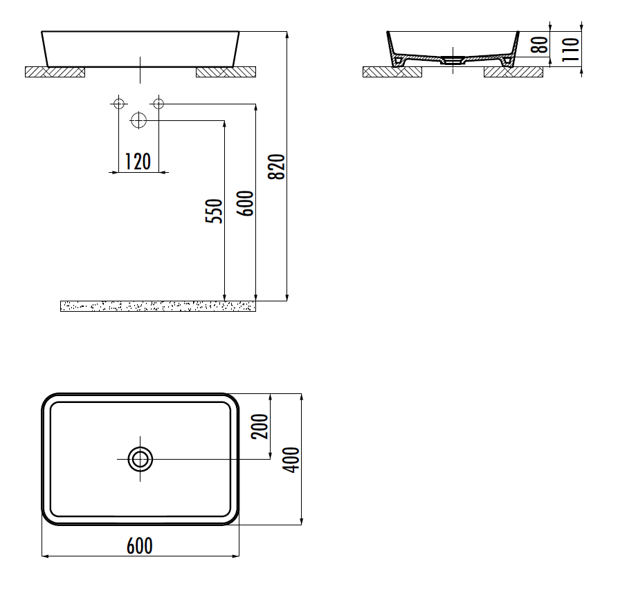 —Раковина из сантехнического фарфора Creavit Loop LP060-00CB00E-0000 60х40 накладная цвет белый без отверстий под смеситель