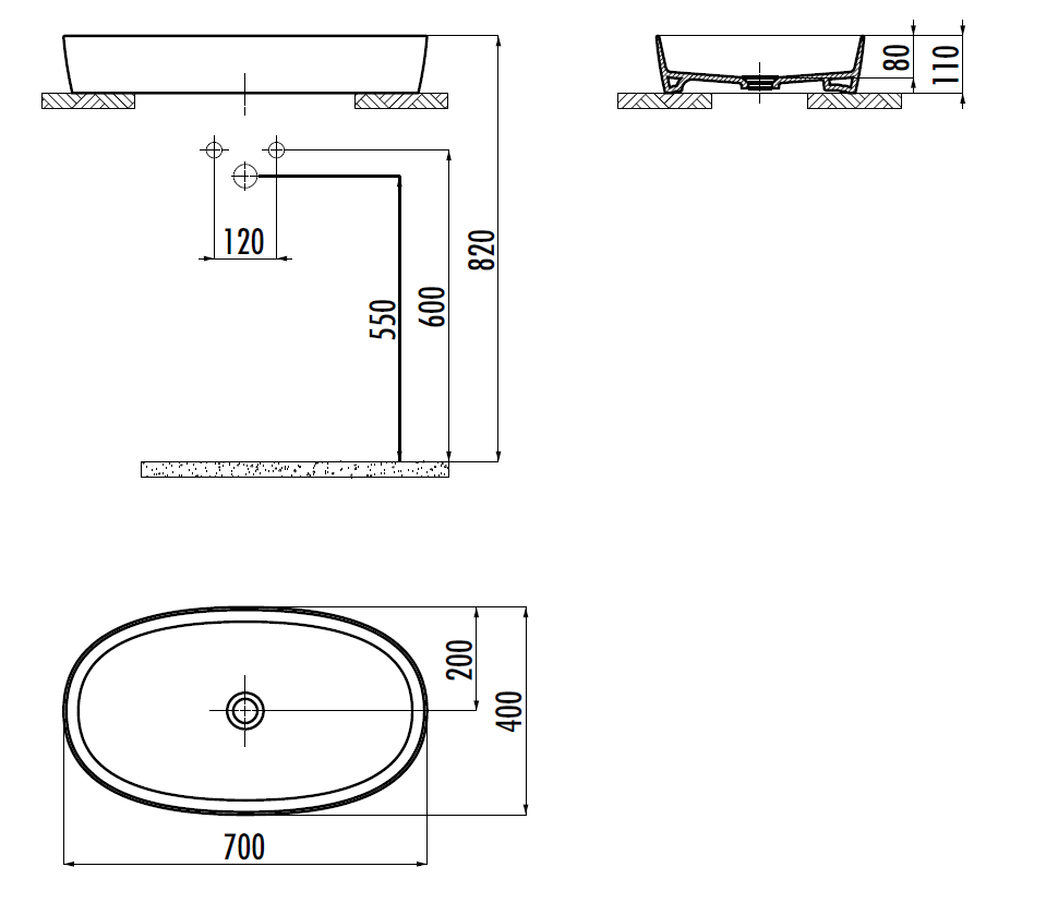 —Раковина из сантехнического фарфора Creavit Loop LP170-00CB00E-0000 70х40 накладная цвет белый