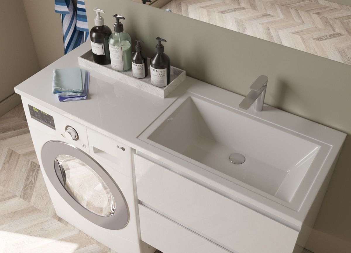 Изящнаая раковина гармонично впишется в любой интерьер ванной комнаты и позволит рационально использовать пространство над стиральной машиной.