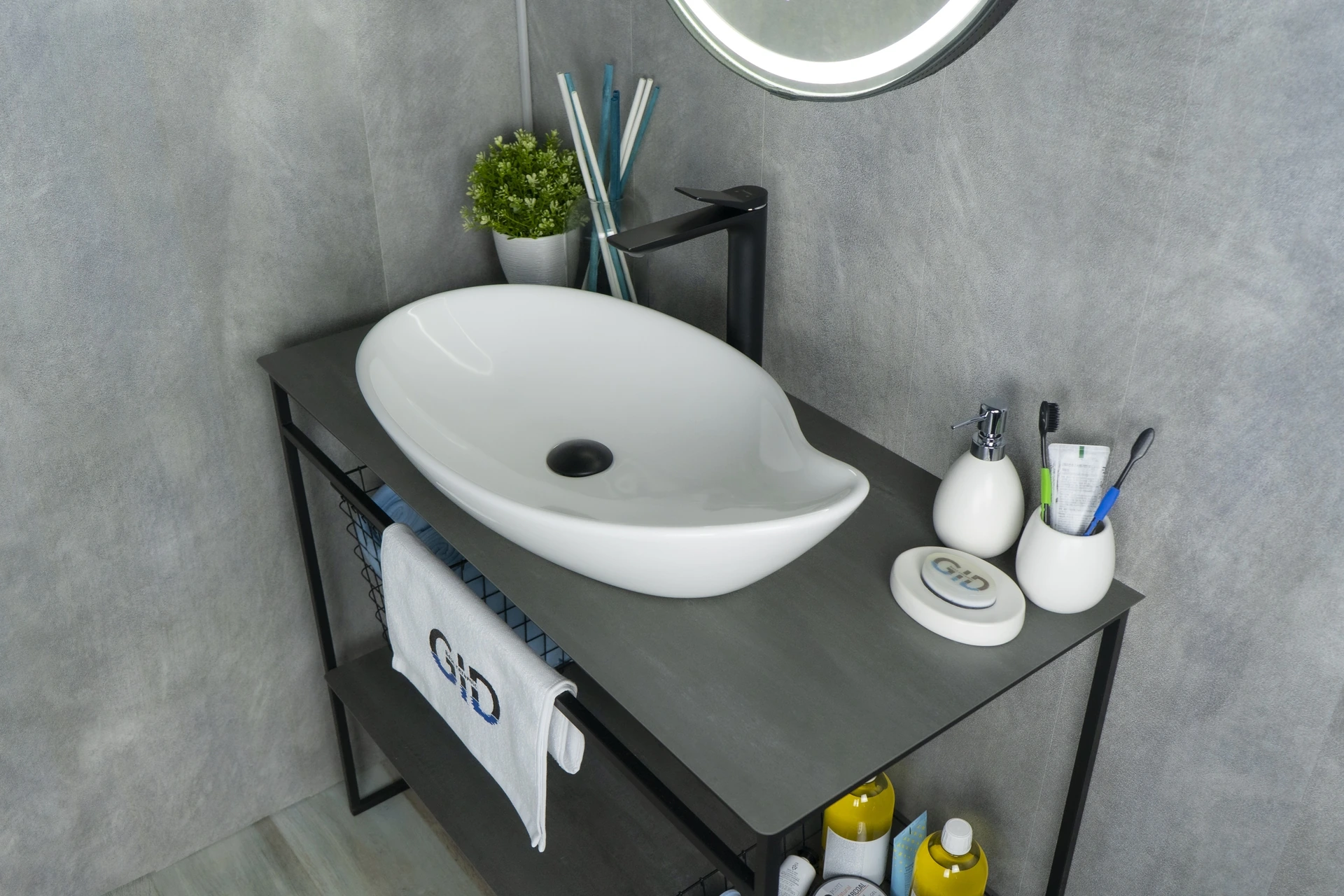 Раковина керамическая Gid Creativo 51116 70х40 накладная цвет белый без отверстий под смеситель