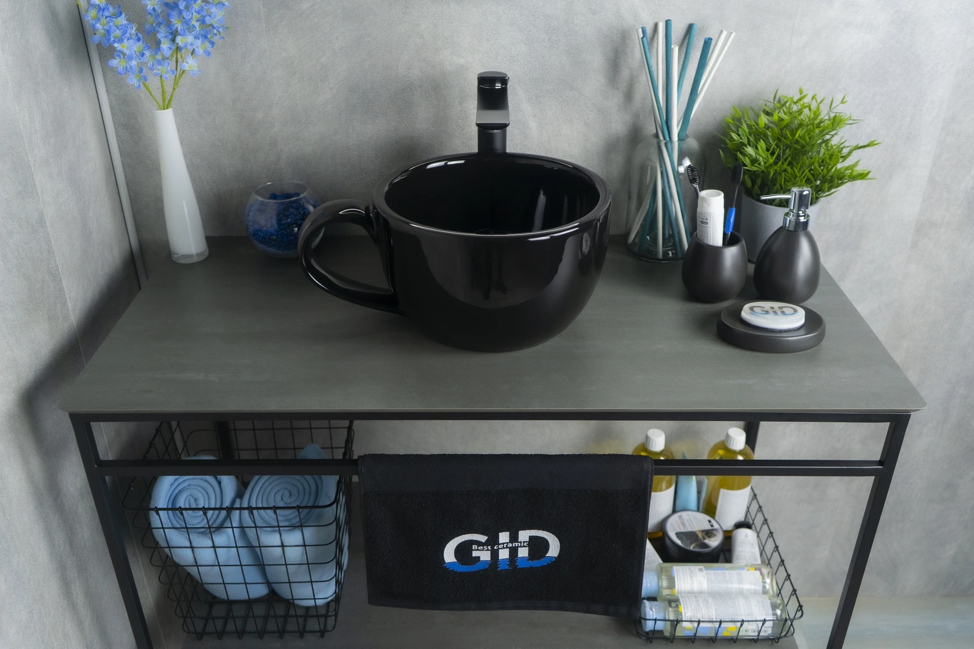 —Раковина керамическая Gid Creativo 52230 40х30 накладная цвет черный без отверстий под смеситель