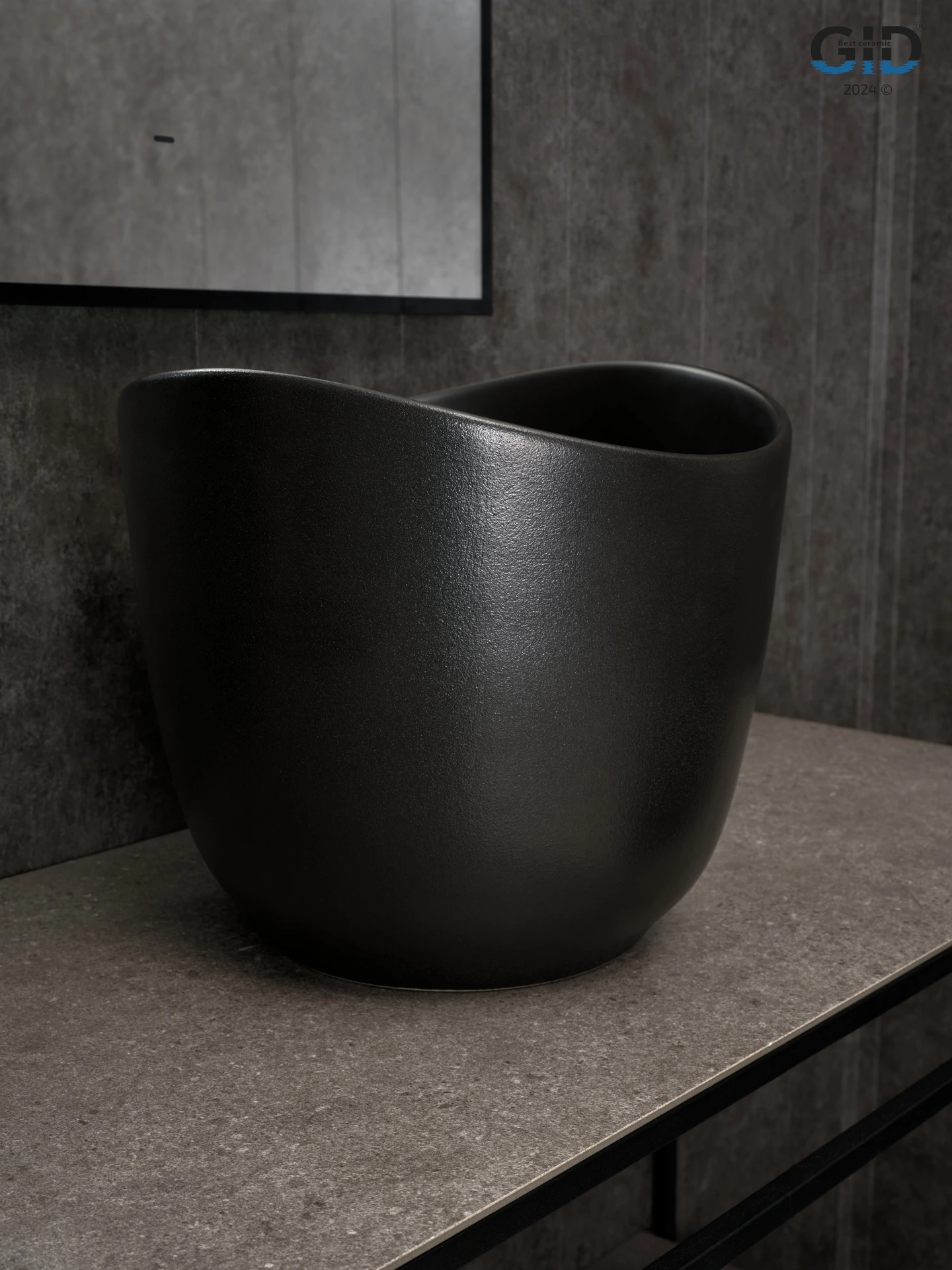 —Раковина керамическая Gid Creativo 53378 40х40 накладная цвет черный без отверстий под смеситель
