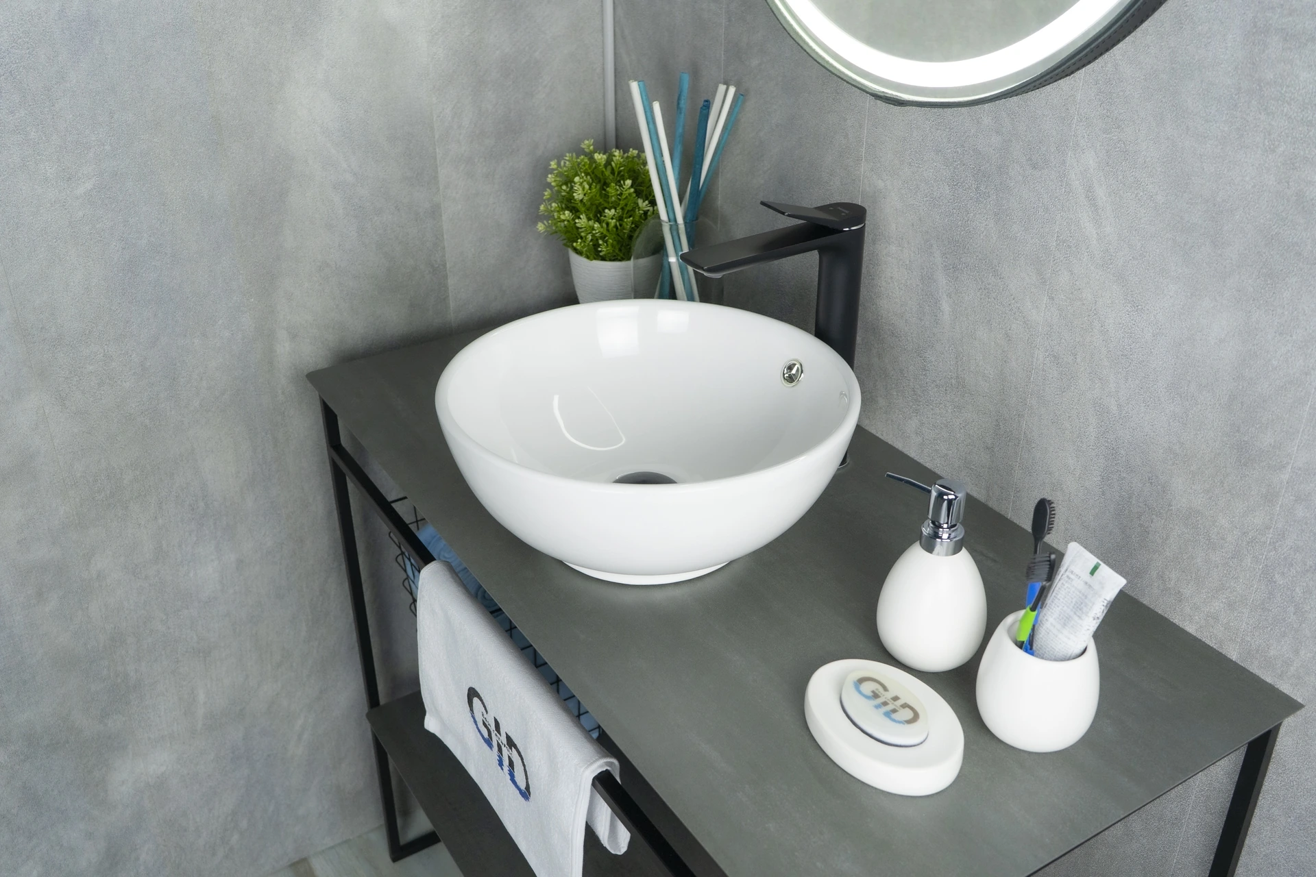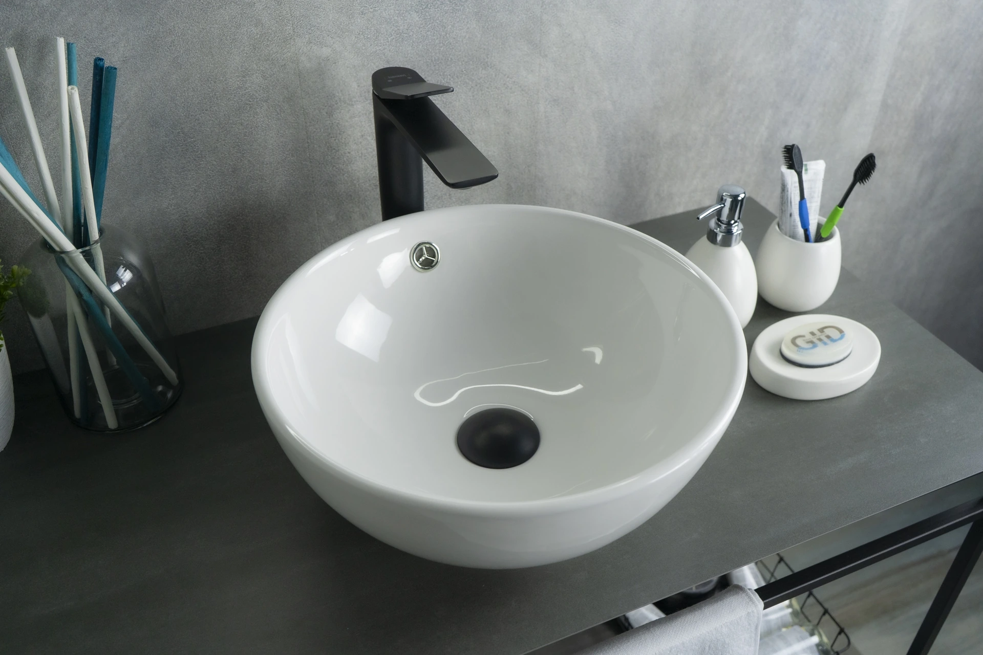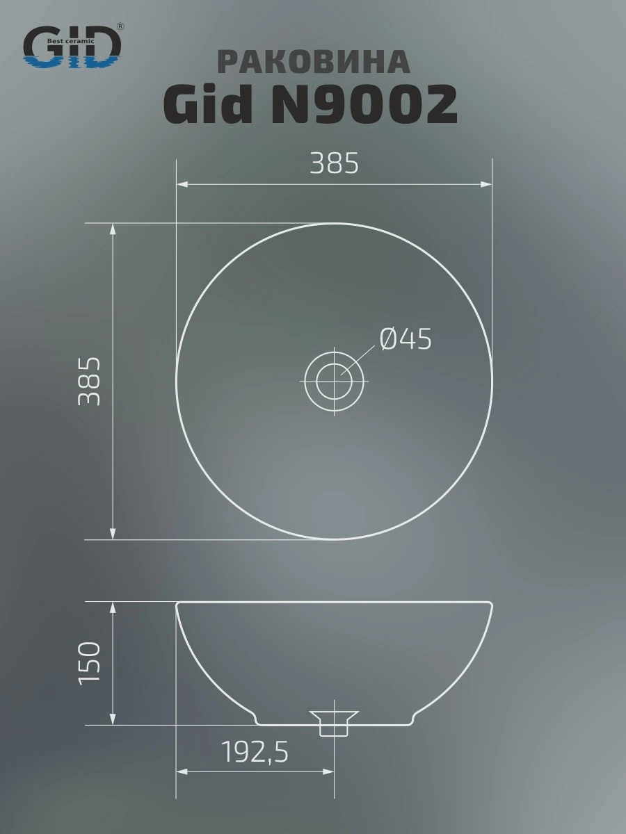 —Раковина керамическая Gid Esfera 51102 40х40 накладная цвет белый без отверстий под смеситель