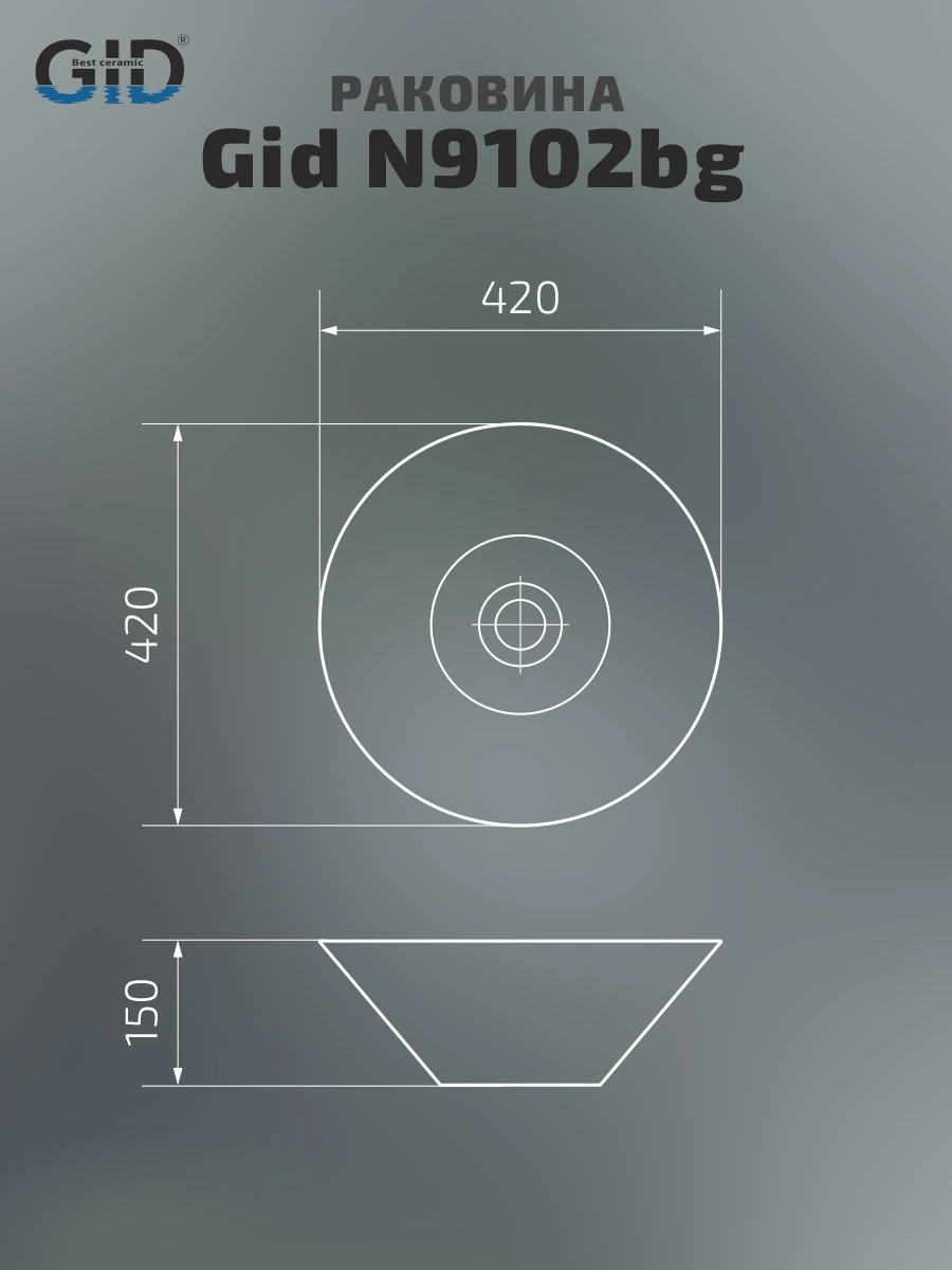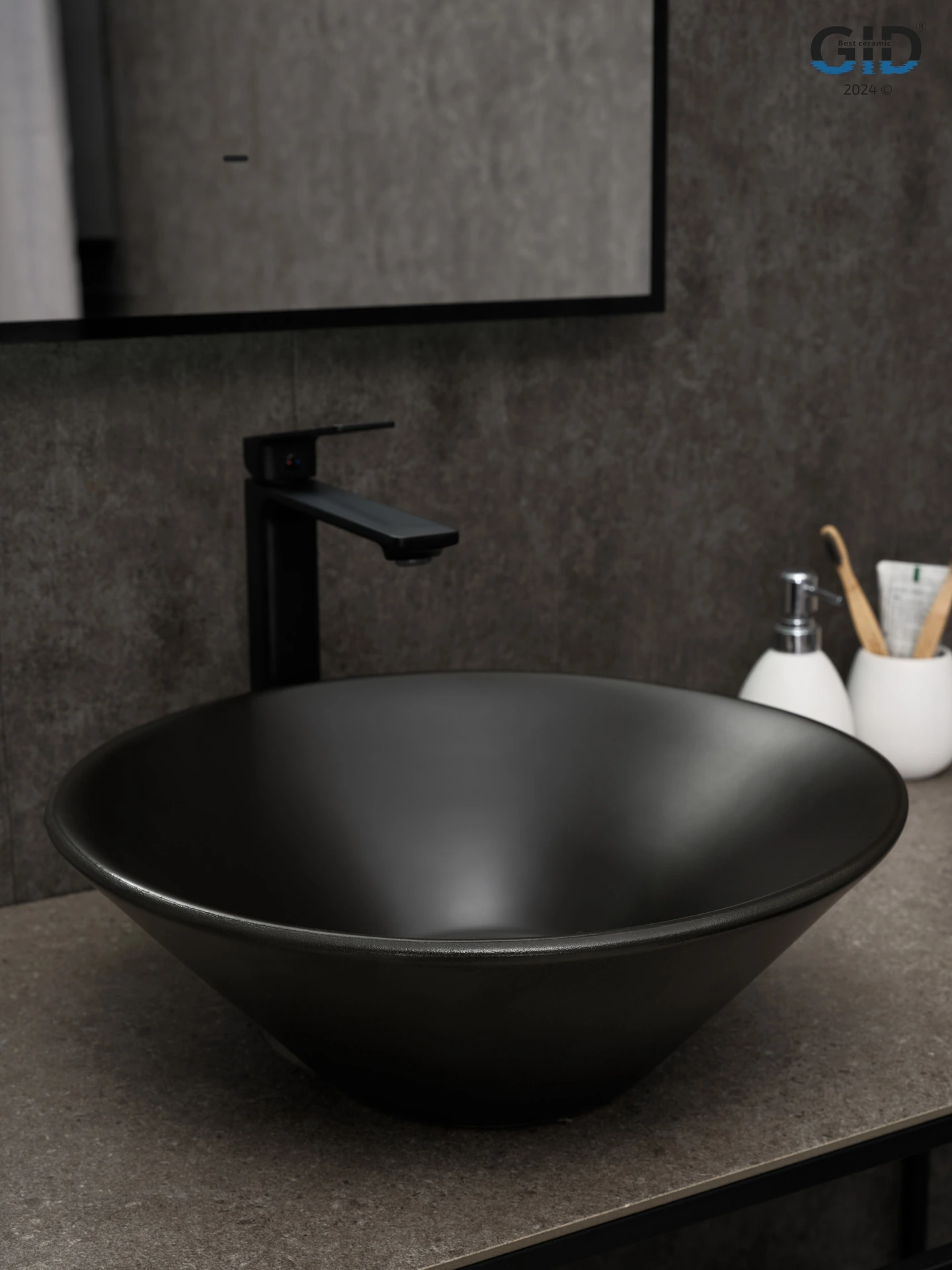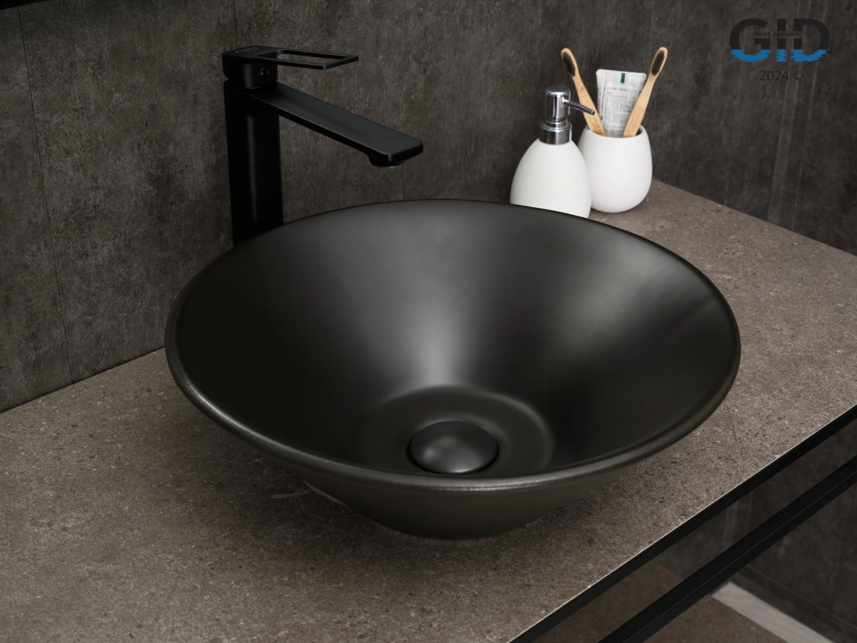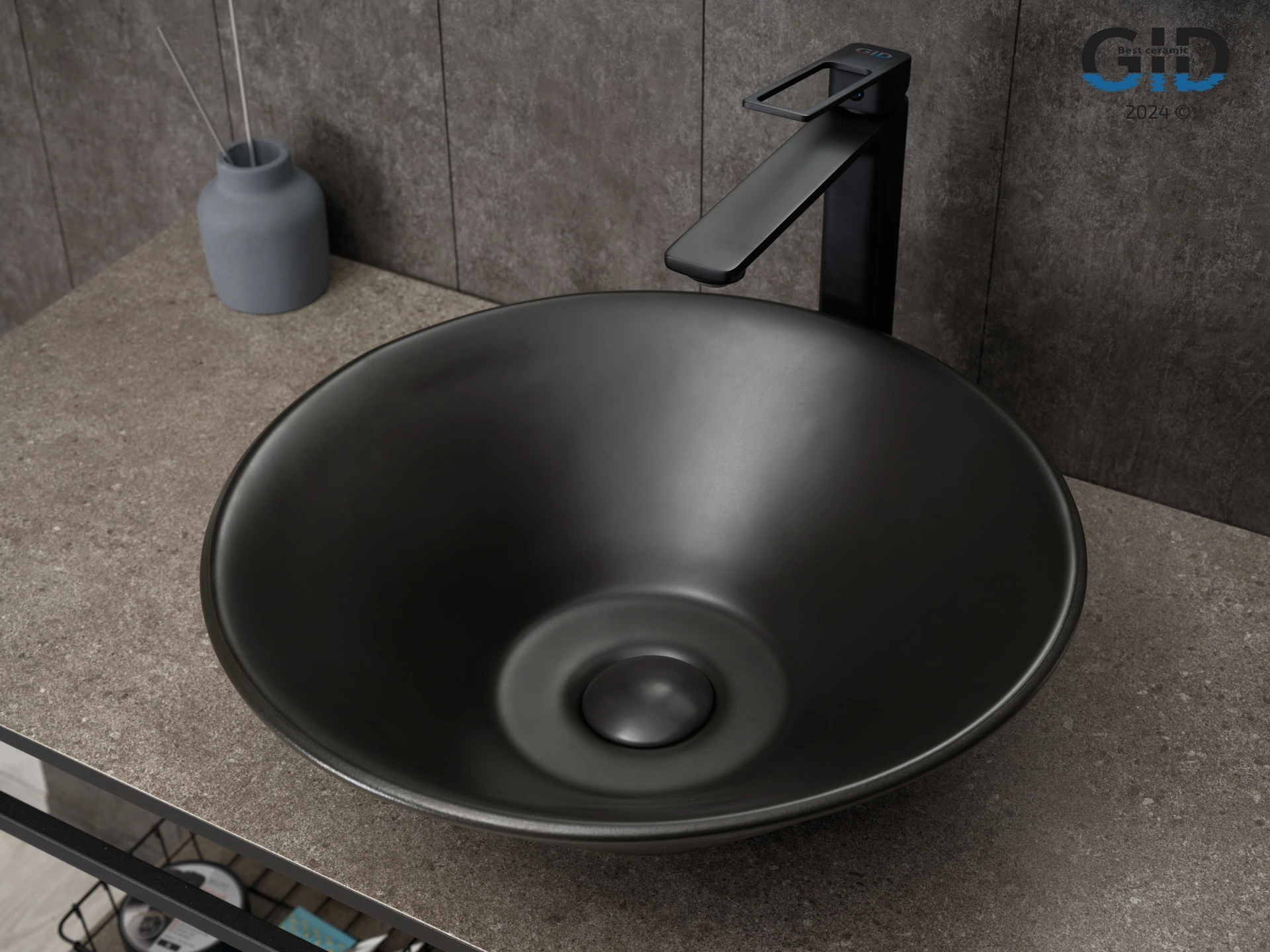 —Раковина керамическая Gid Esfera 53383 40х40 накладная цвет черный без отверстий под смеситель
