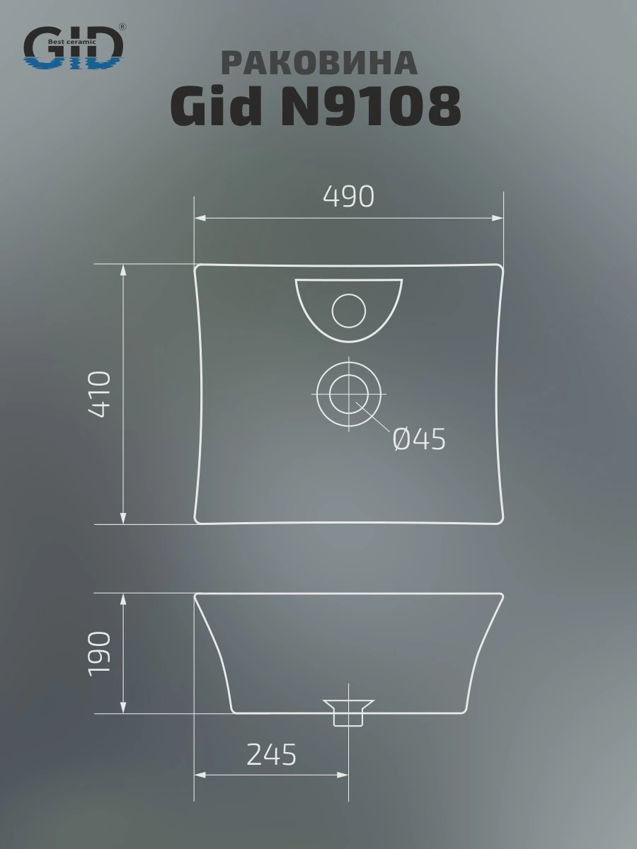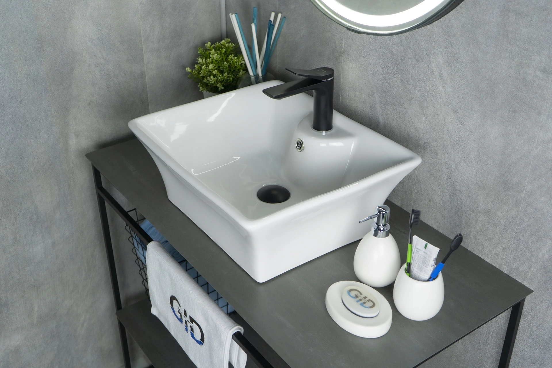 —Раковина керамическая Gid Geométrico 51121 50х40 накладная цвет белый 1 отверстие под смеситель