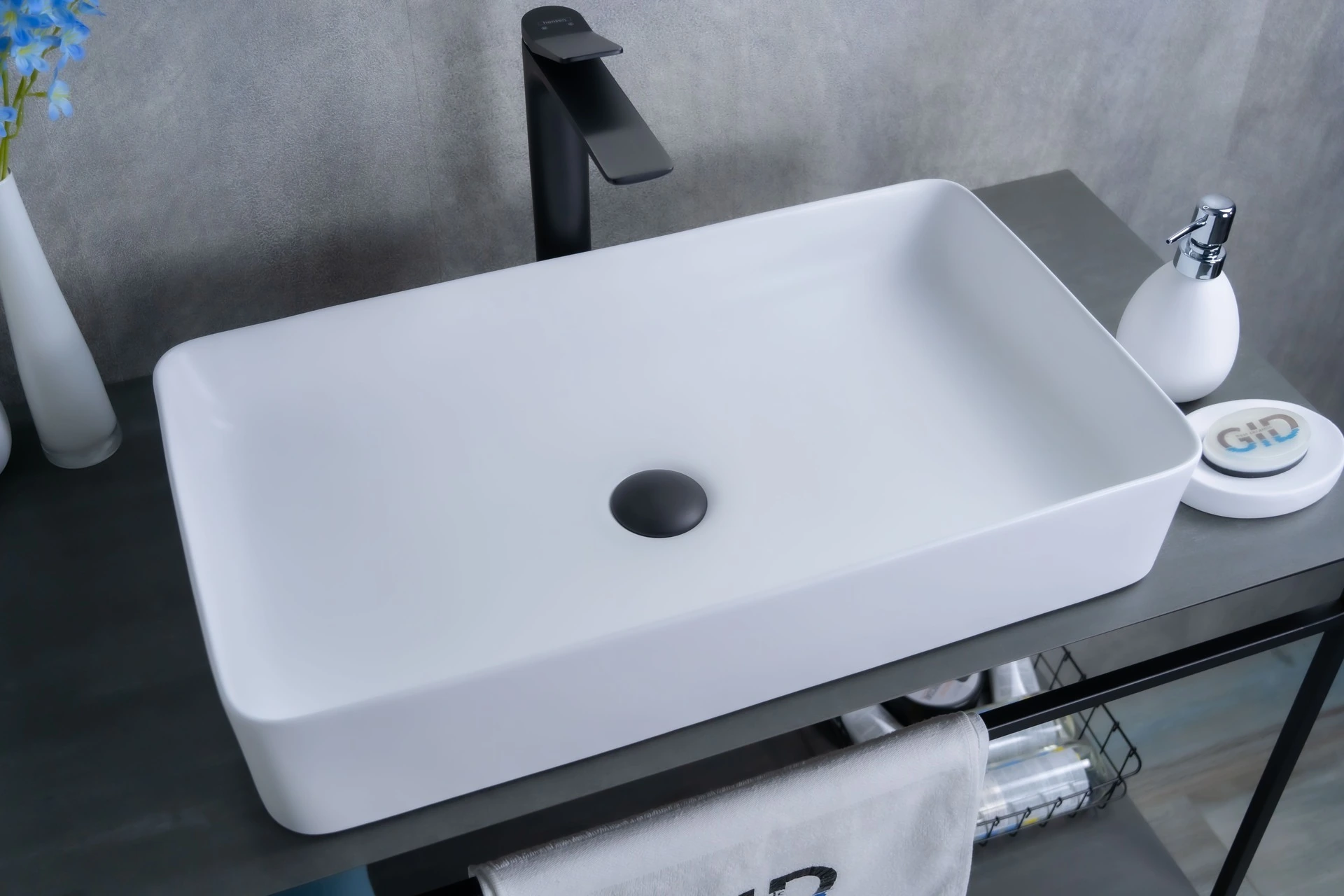 —Раковина керамическая Gid Geométrico 51189 60х30 накладная цвет белый без отверстий под смеситель
