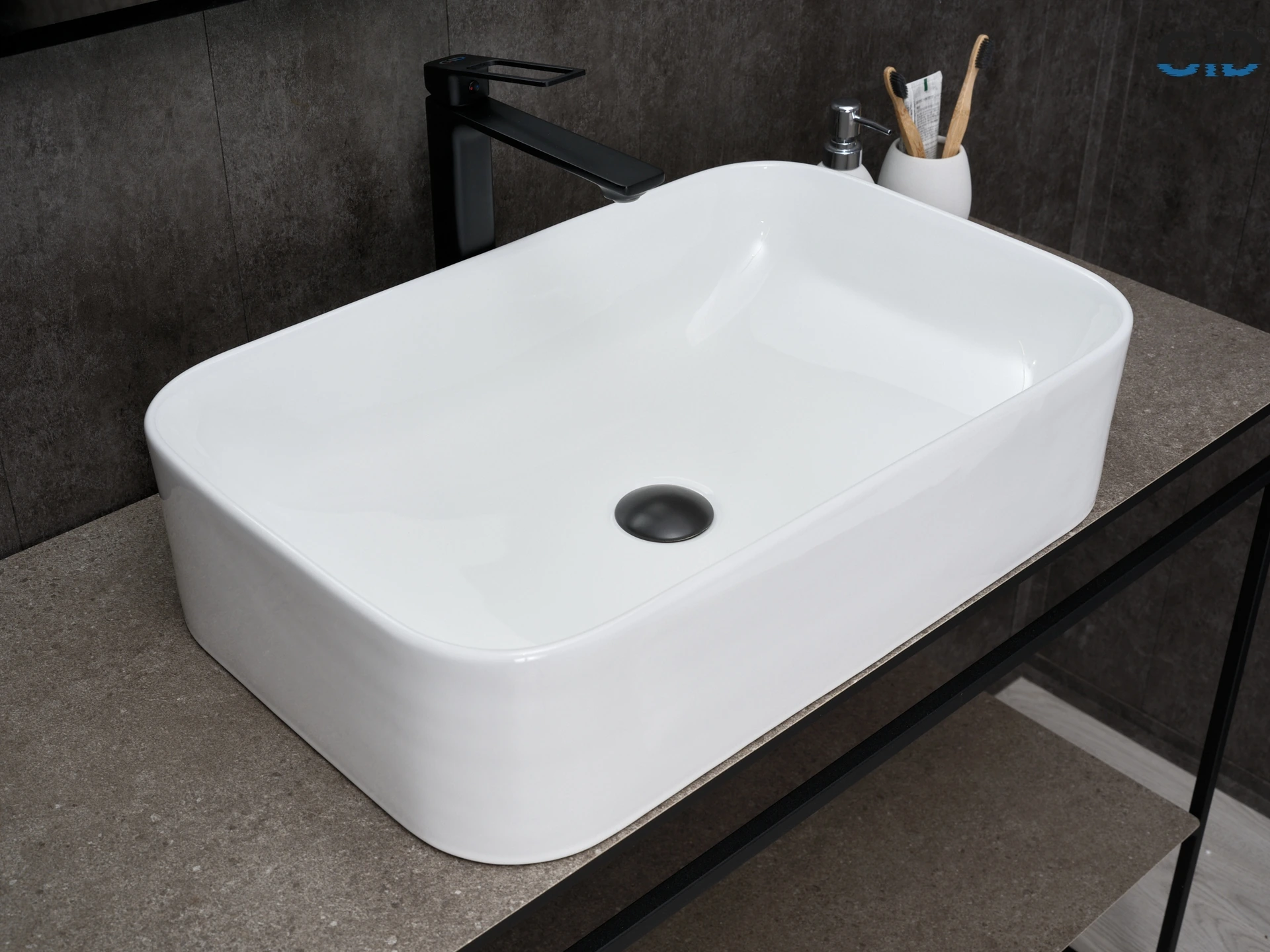 —Раковина керамическая Gid Geométrico 51231 60х40 накладная цвет белый без отверстий под смеситель