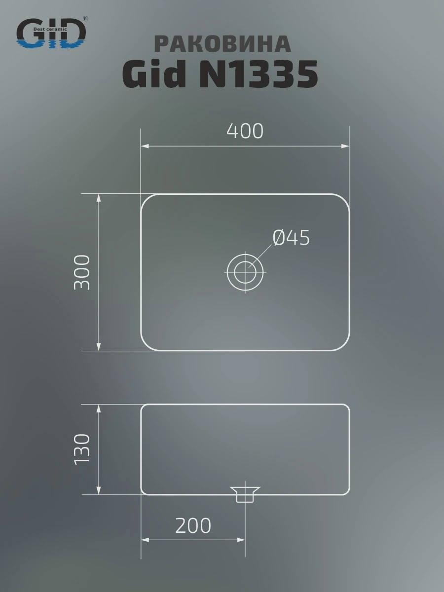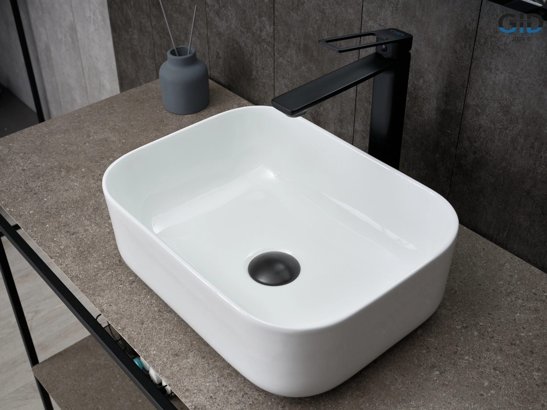 —Раковина керамическая Gid Geométrico 51238 40х30 накладная цвет белый без отверстий под смеситель