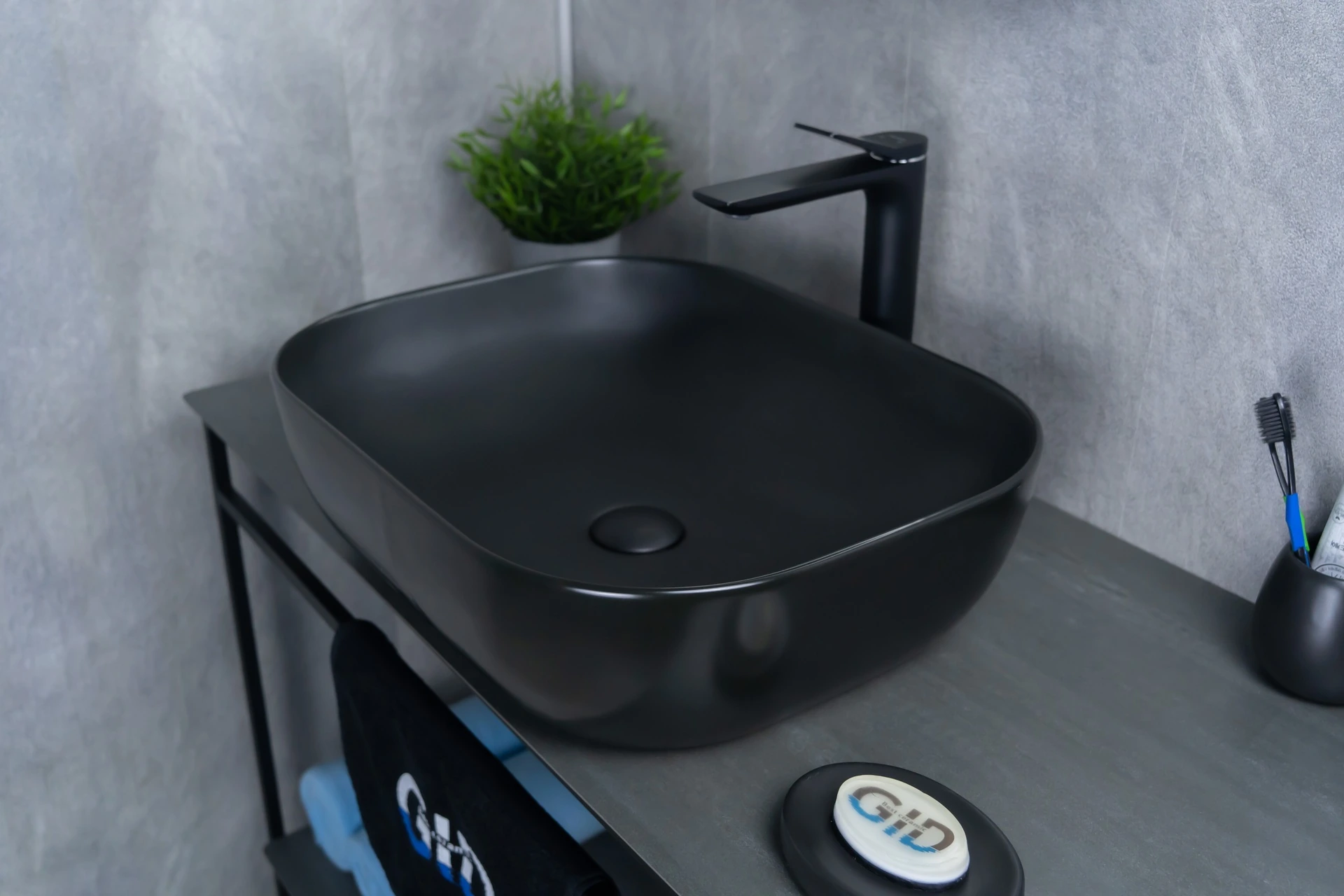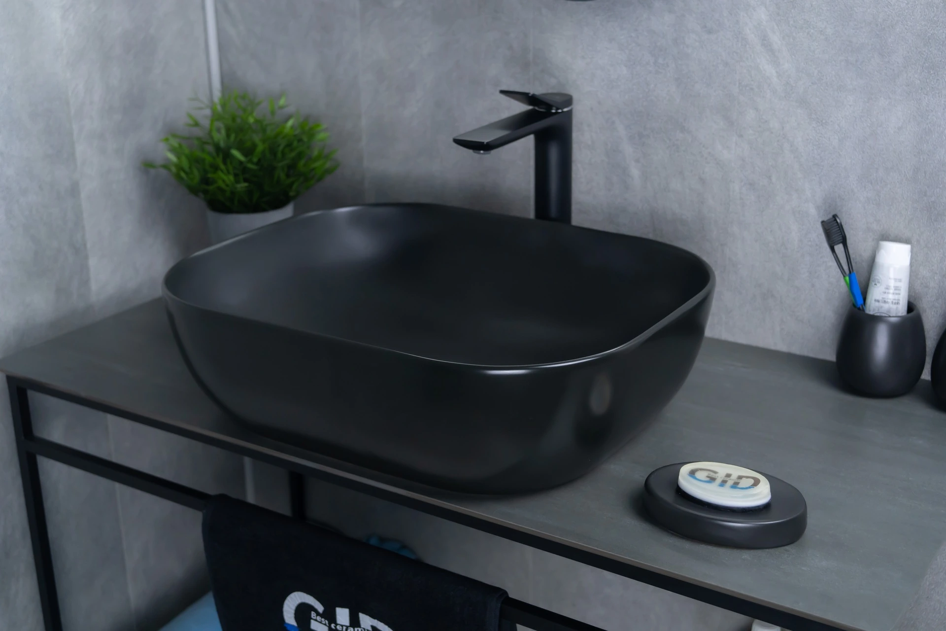 —Раковина керамическая Gid Geométrico 53348 50х40 накладная цвет черный без отверстий под смеситель