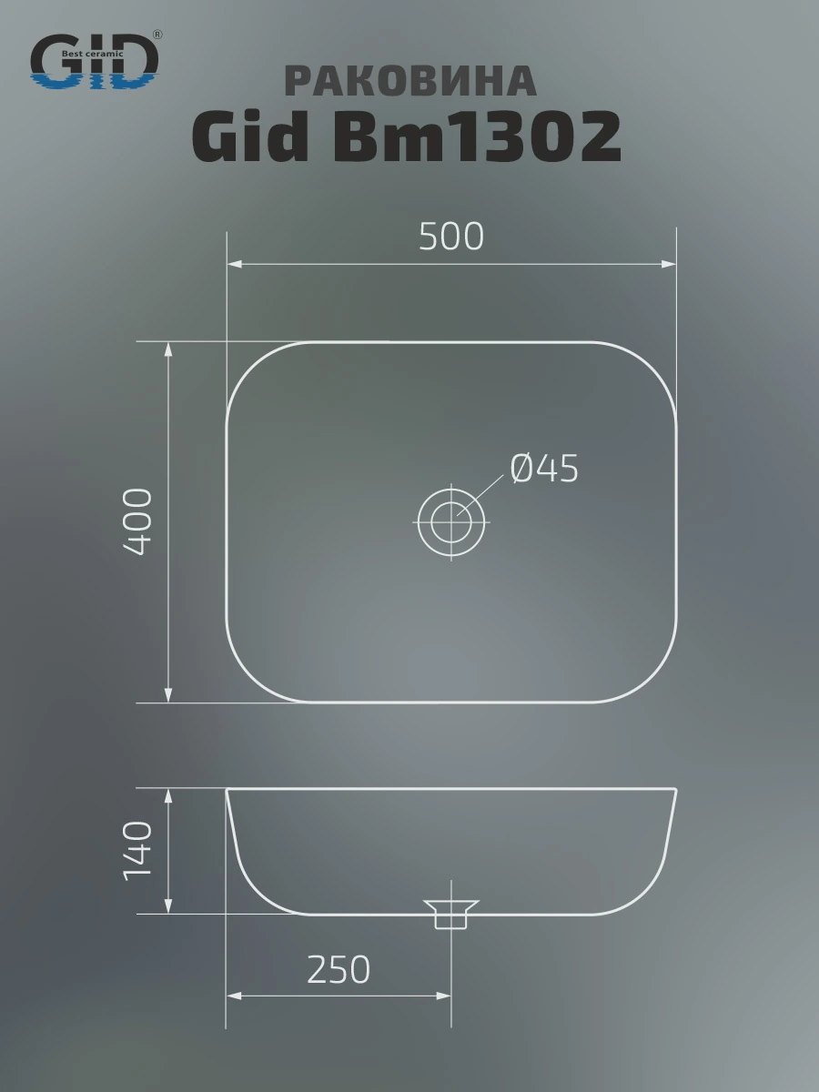Раковина керамическая Gid Geométrico 53348 50х40 накладная цвет черный без отверстий под смеситель