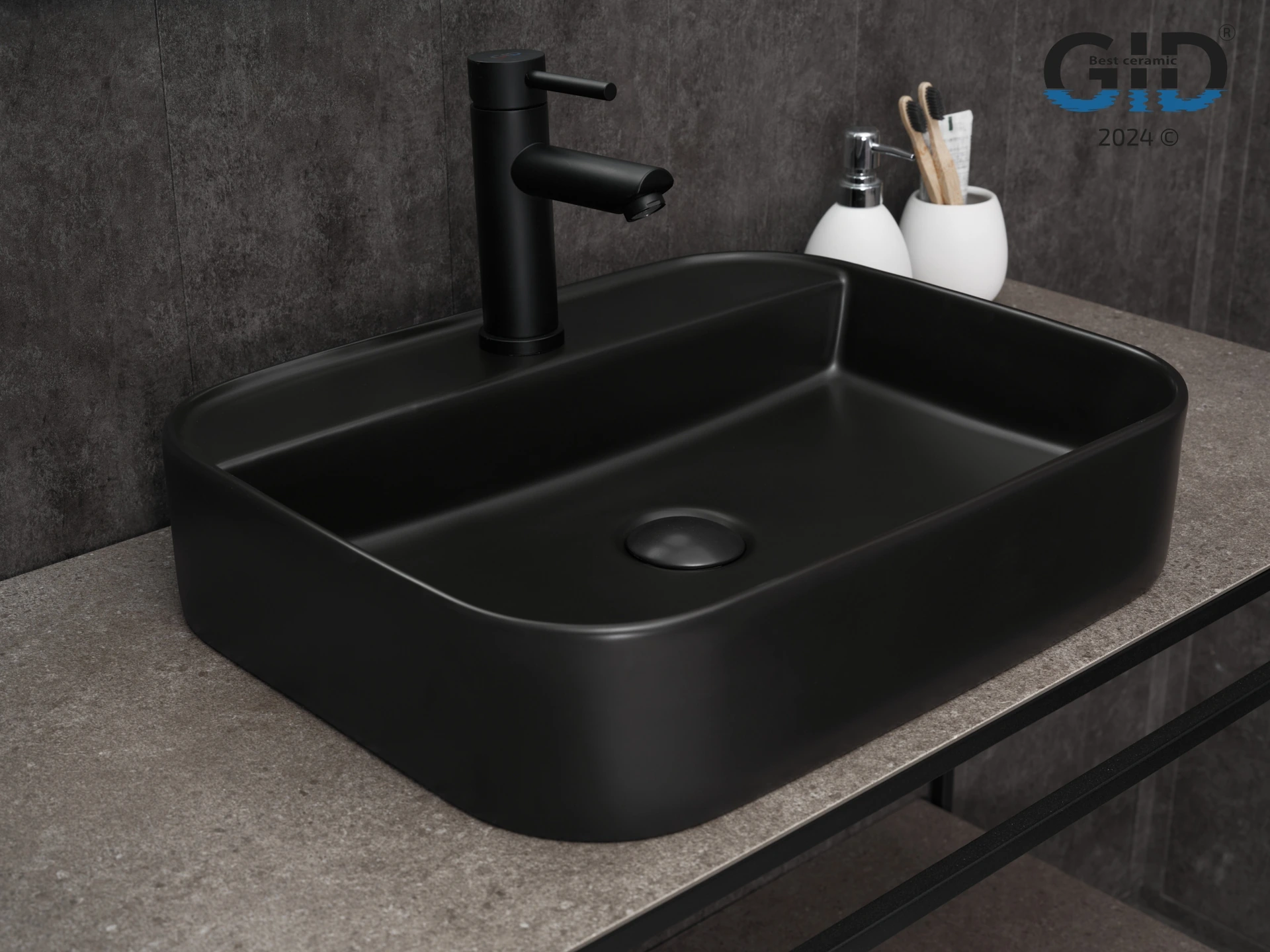 —Раковина керамическая Gid Geométrico 53364 50х40 накладная цвет черный 1 отверстие под смеситель