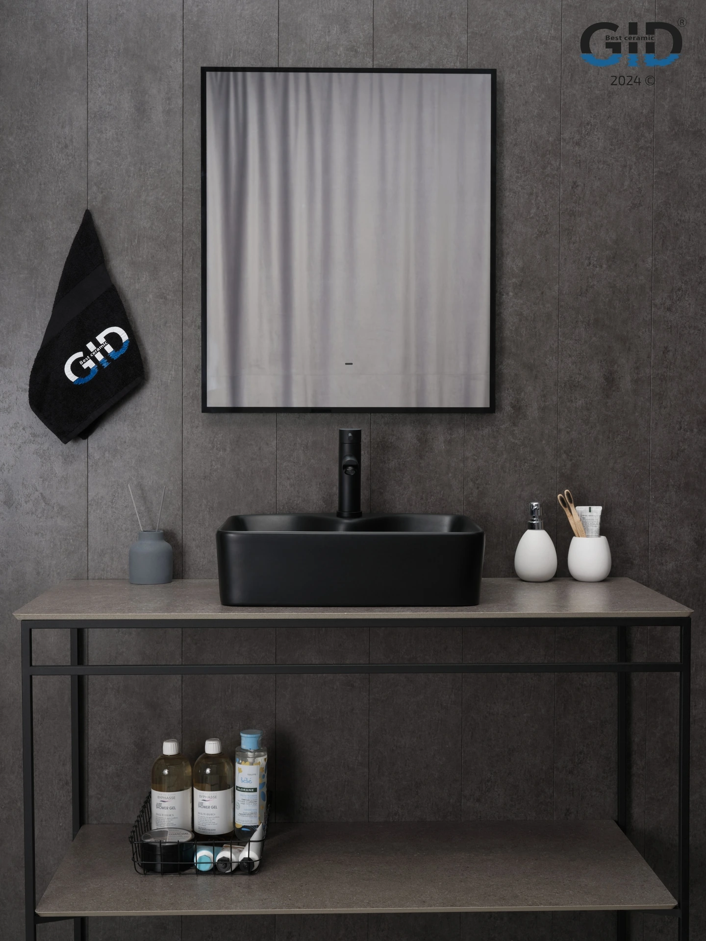 —Раковина керамическая Gid Geométrico 53373 50х40 накладная цвет черный 1 отверстие под смеситель