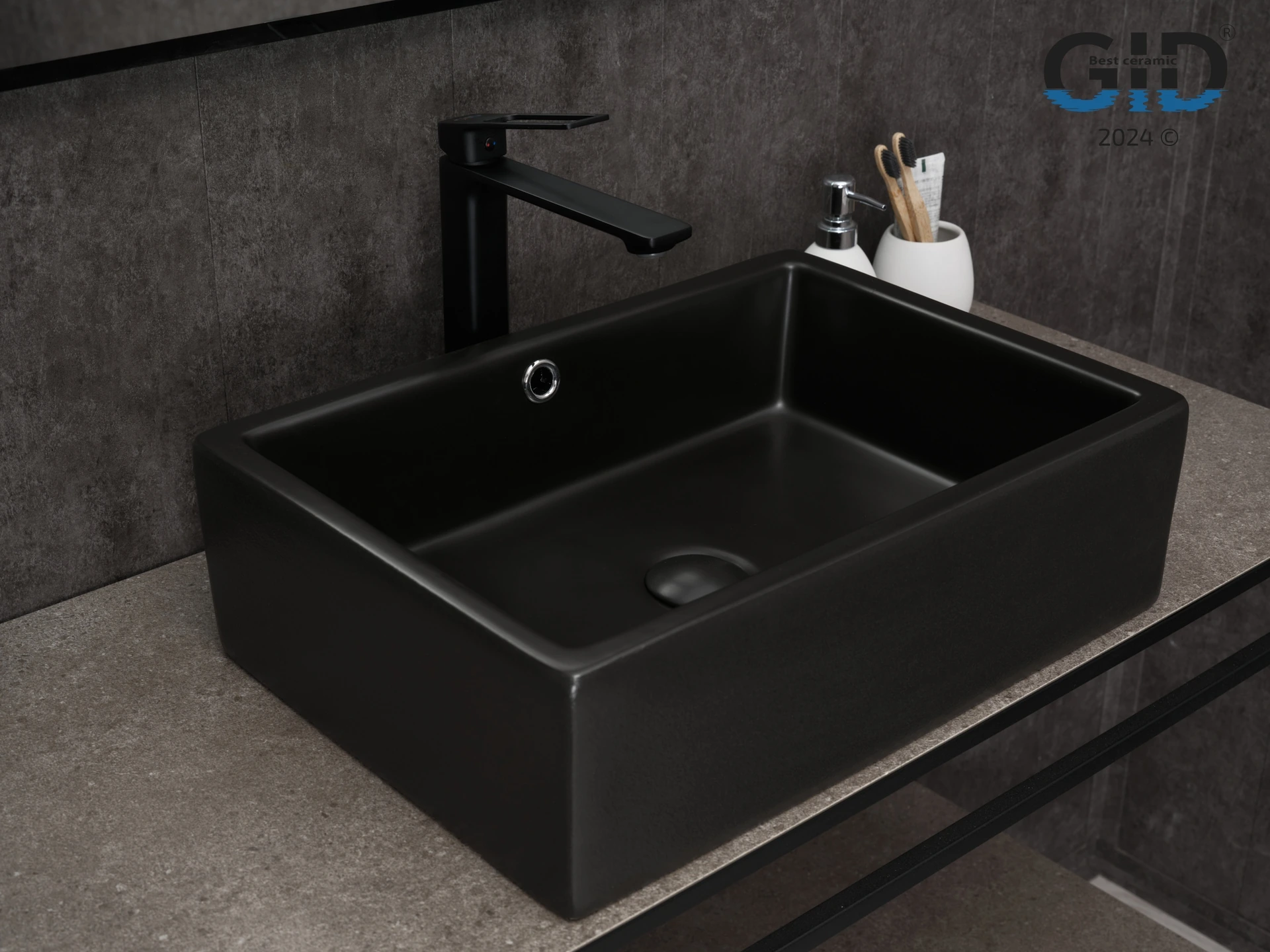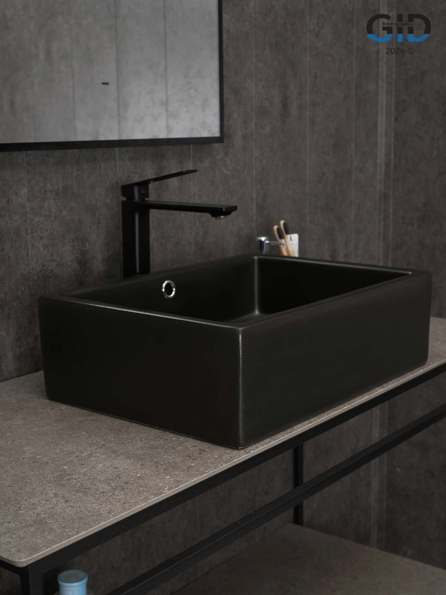 —Раковина керамическая Gid Geométrico 53381 50х40 накладная цвет черный без отверстий под смеситель