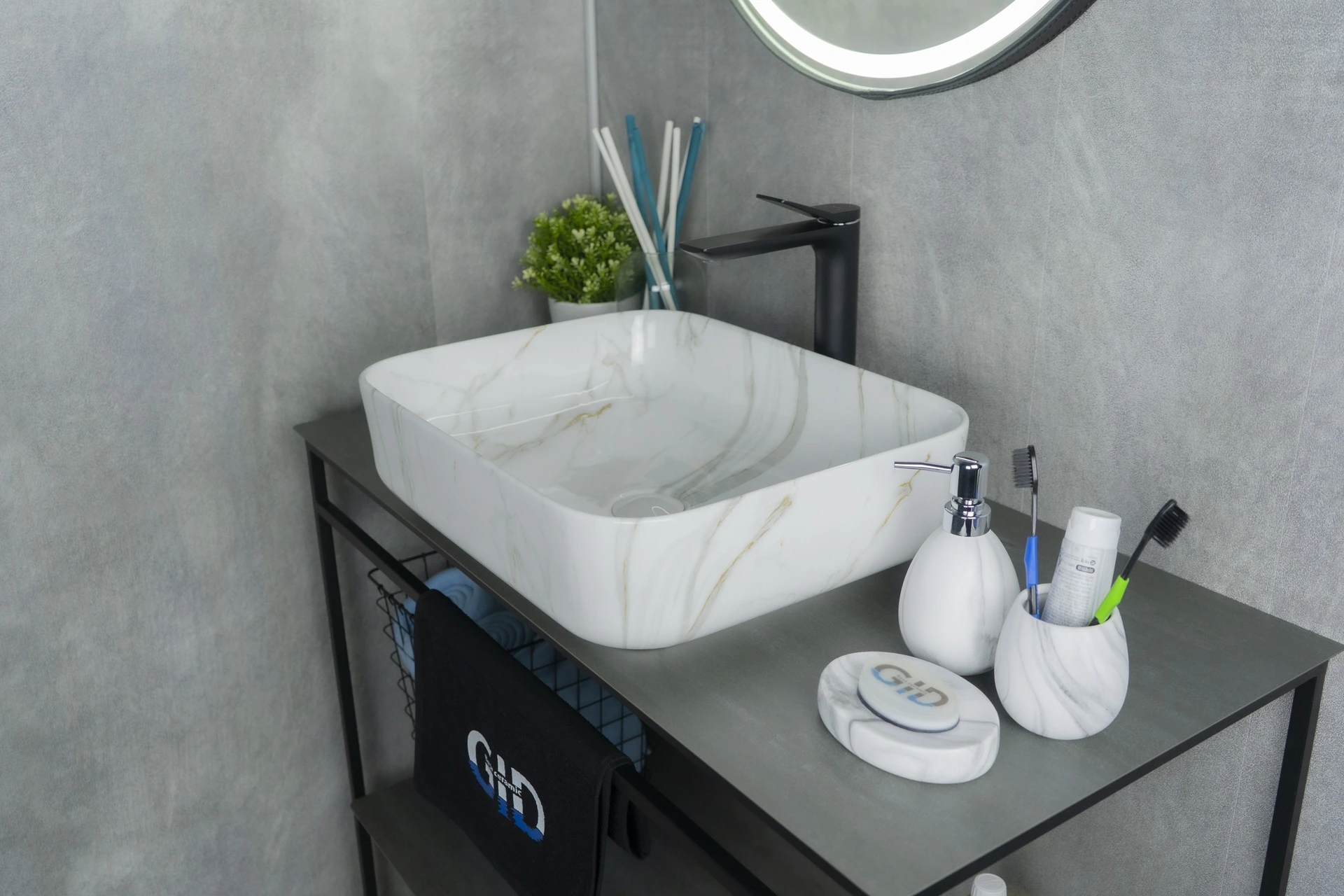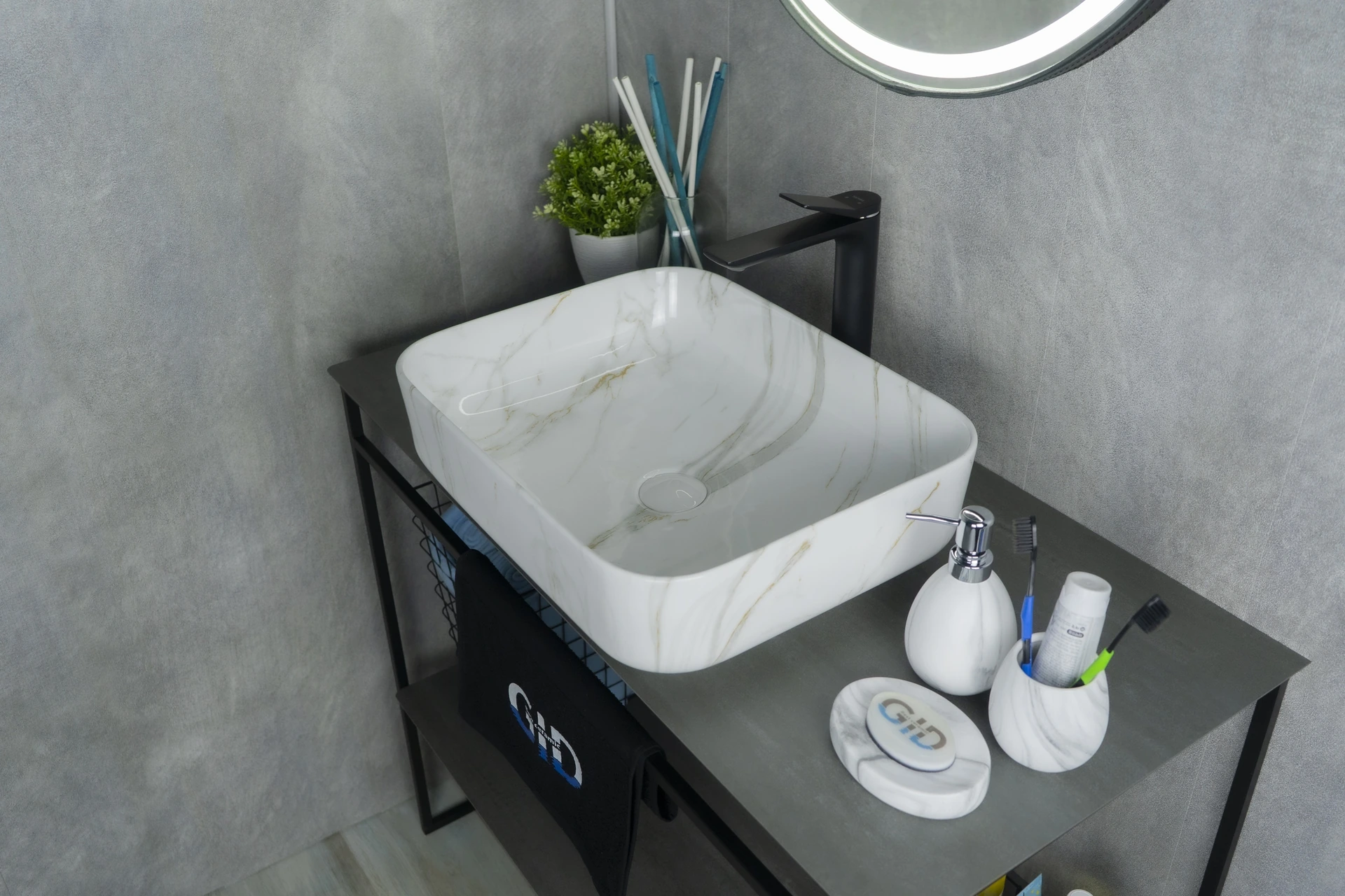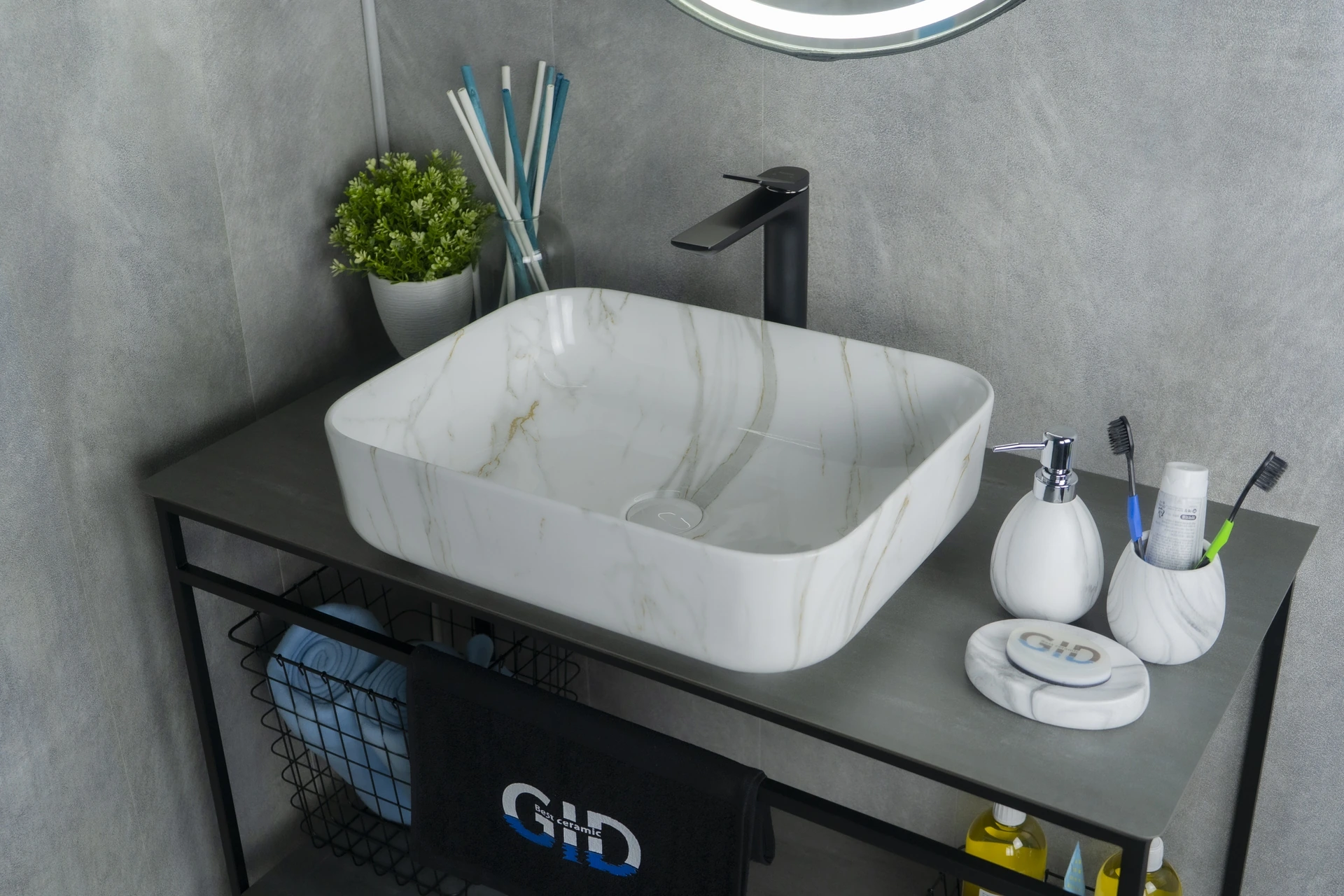 —Раковина керамическая Gid Geométrico 54426 50х40 накладная цвет многоцветный без отверстий под смеситель