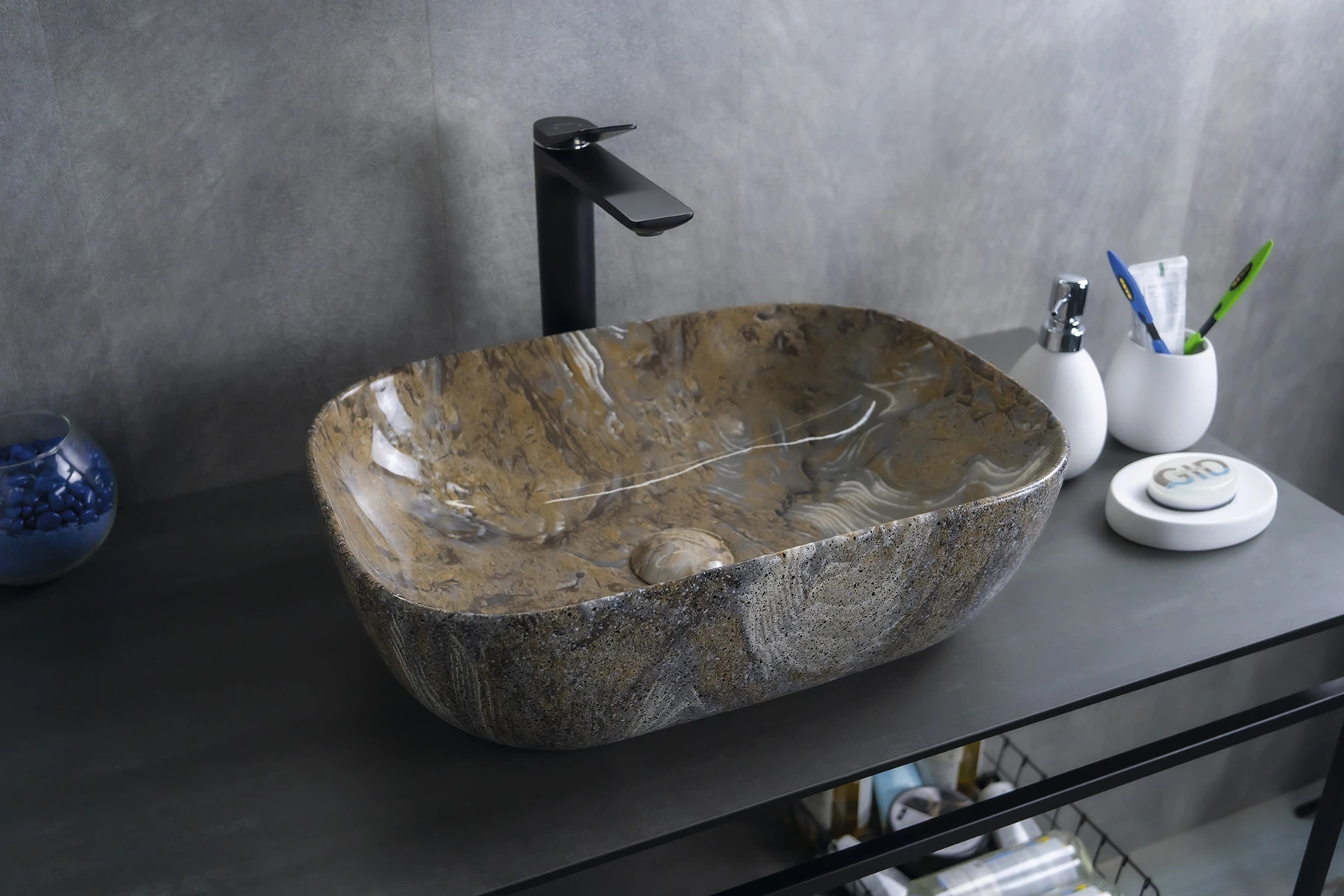 —Раковина керамическая Gid Geométrico 54474 50х30 накладная цвет многоцветный без отверстий под смеситель