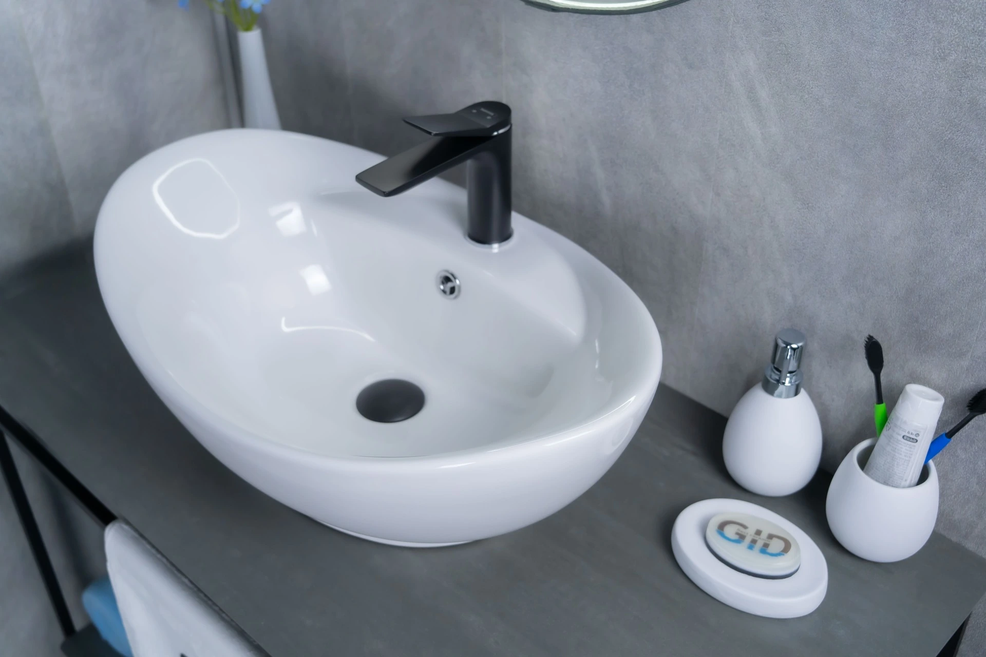 —Раковина керамическая Gid Lago 51107 60х40 накладная цвет белый 1 отверстие под смеситель