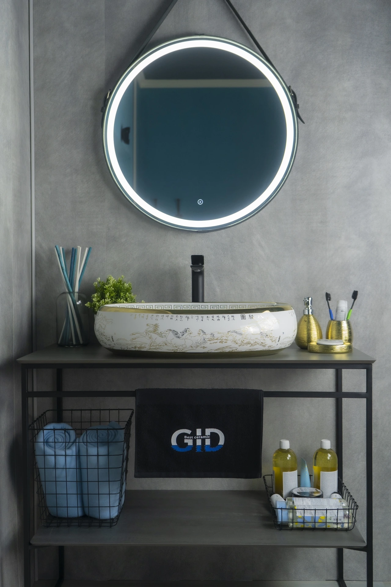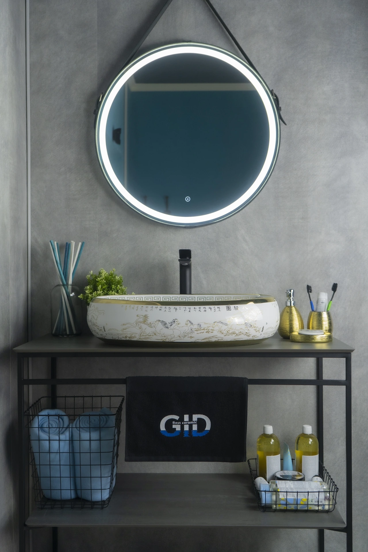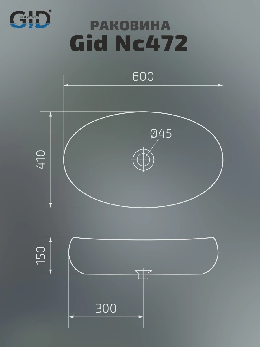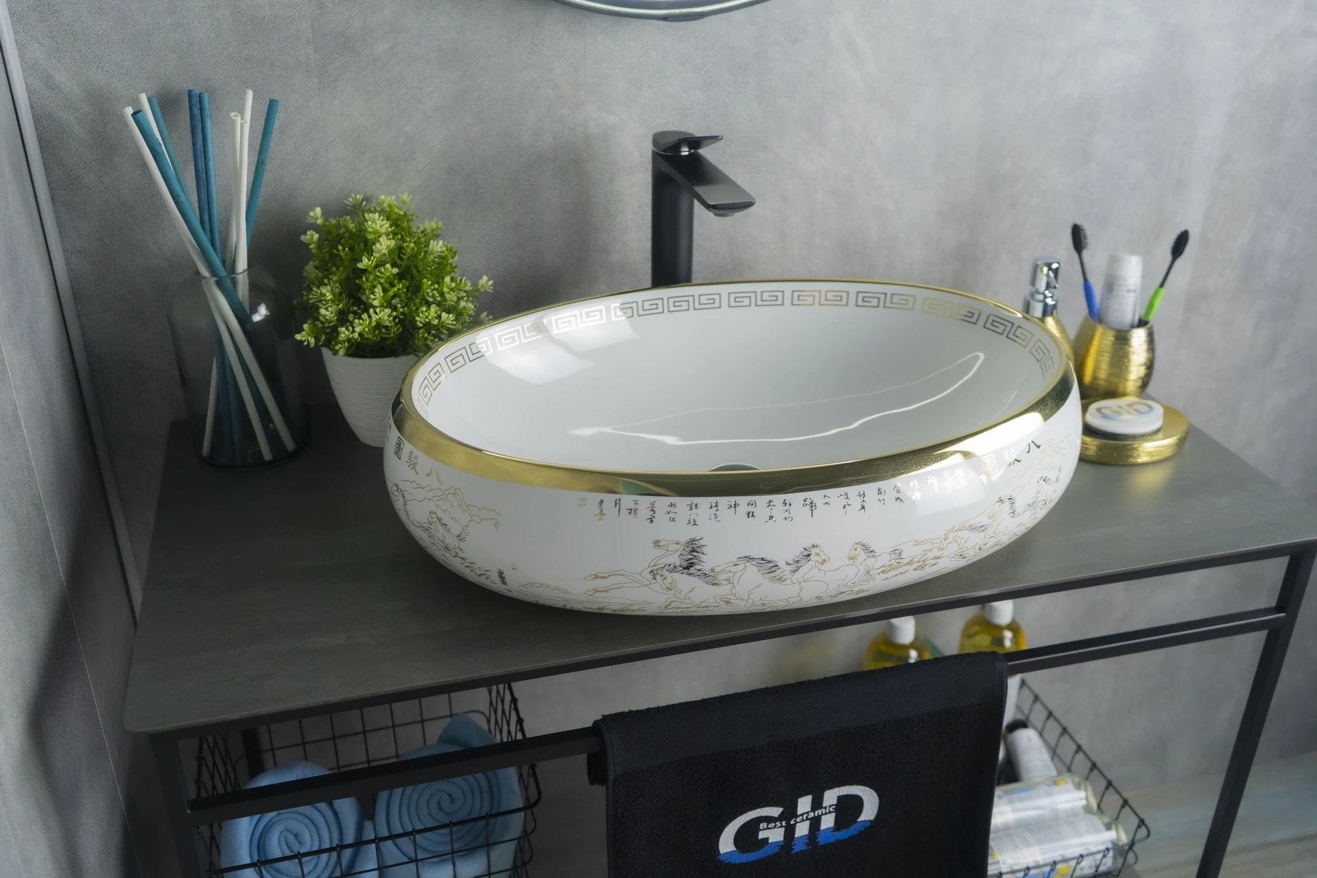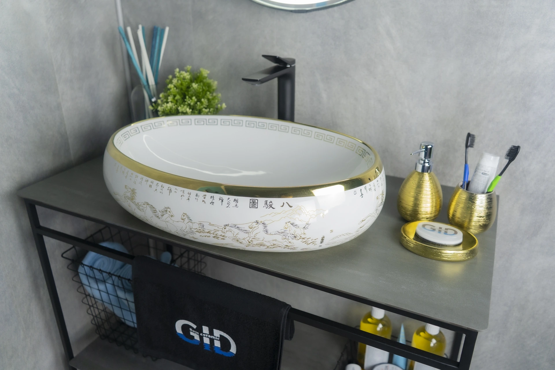 —Раковина керамическая Gid Lago 52222 60х40 накладная цвет белый/золото без отверстий под смеситель