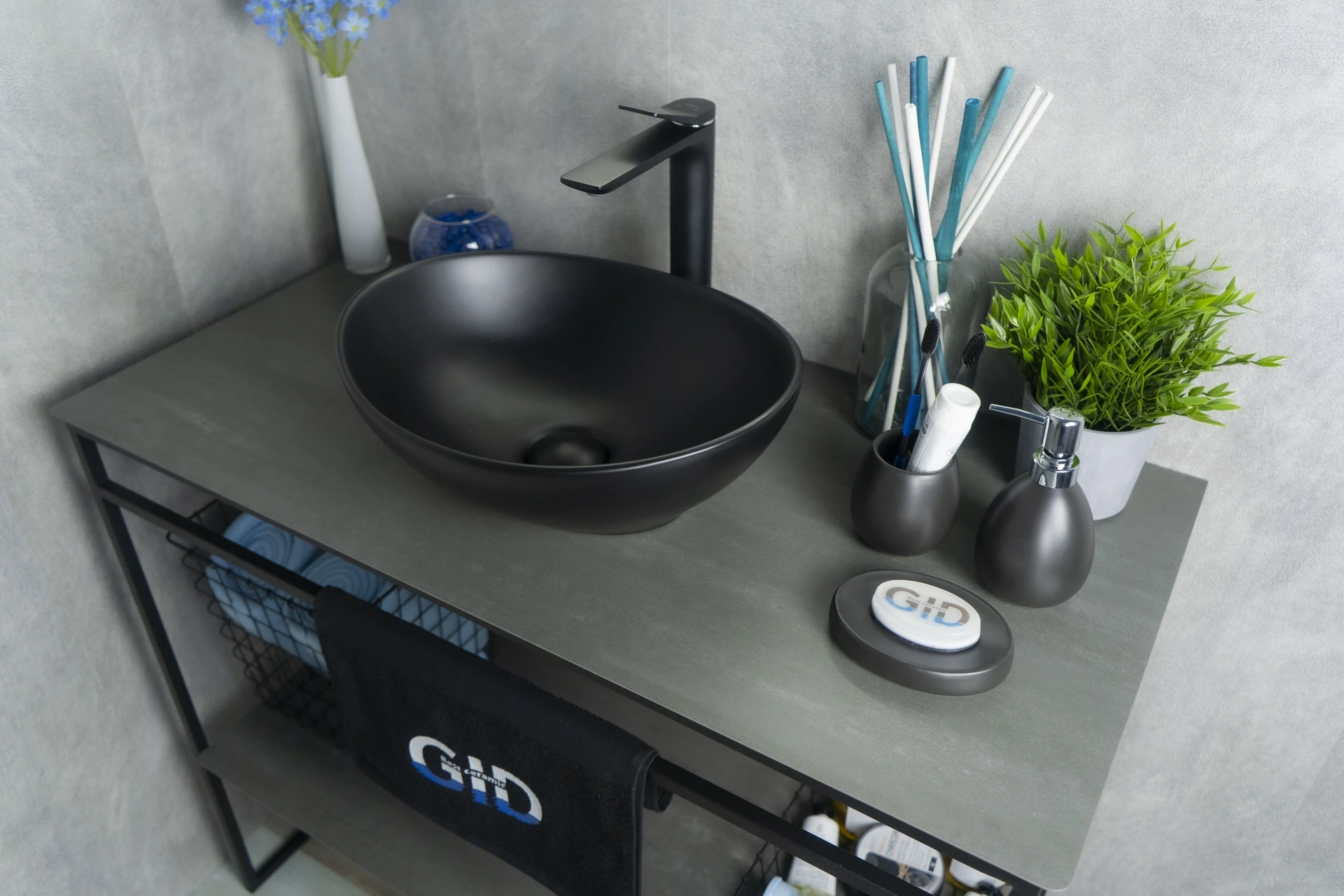 —Раковина керамическая Gid Lago 52223 40х30 накладная цвет черный без отверстий под смеситель