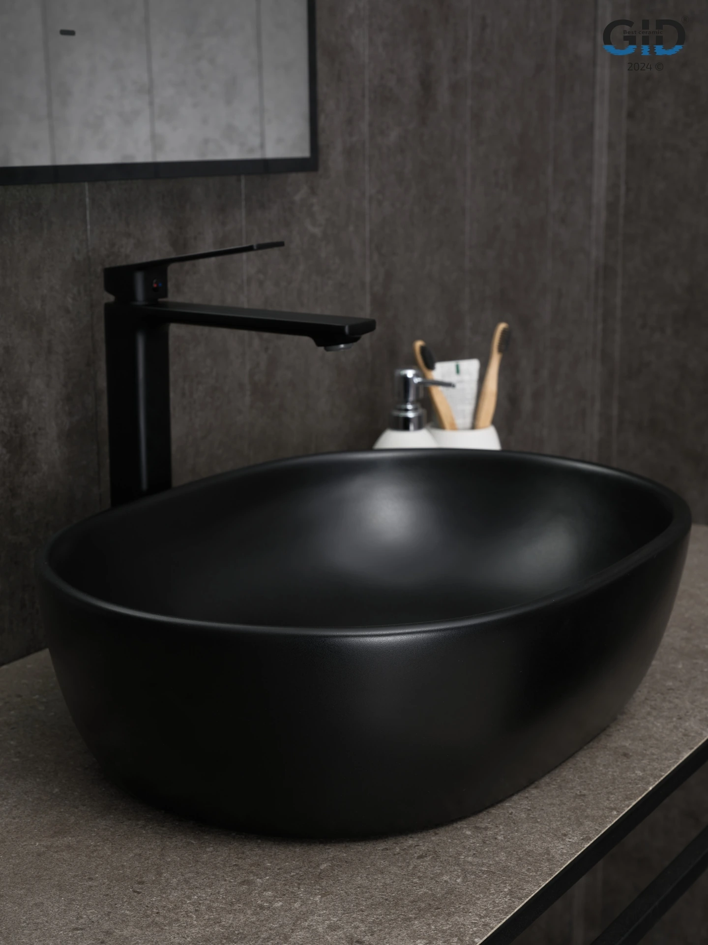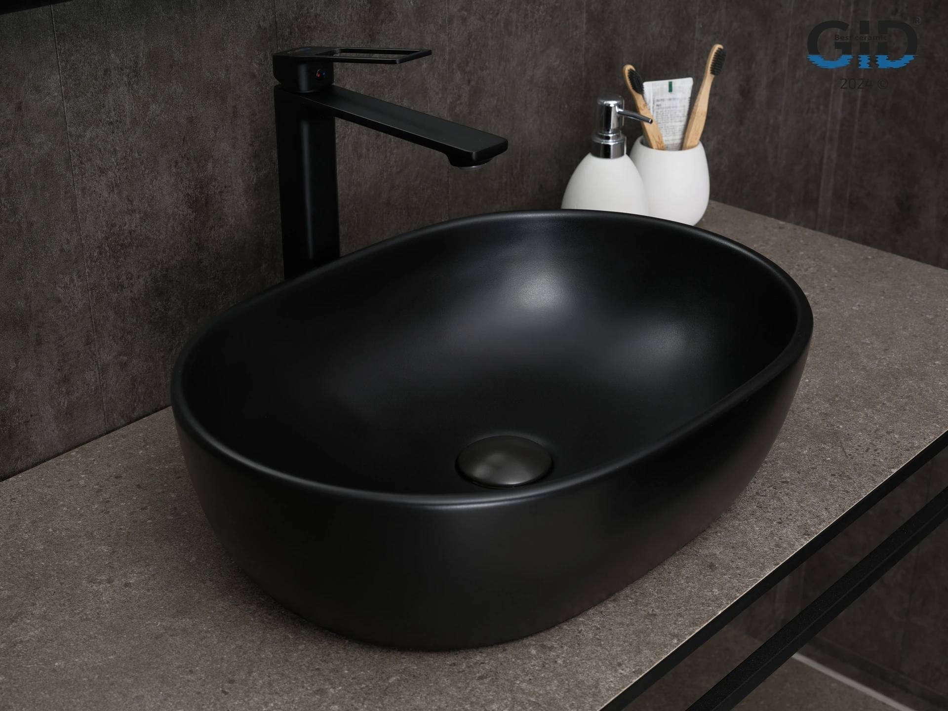 —Раковина керамическая Gid Lago 53370 50х40 накладная цвет черный без отверстий под смеситель