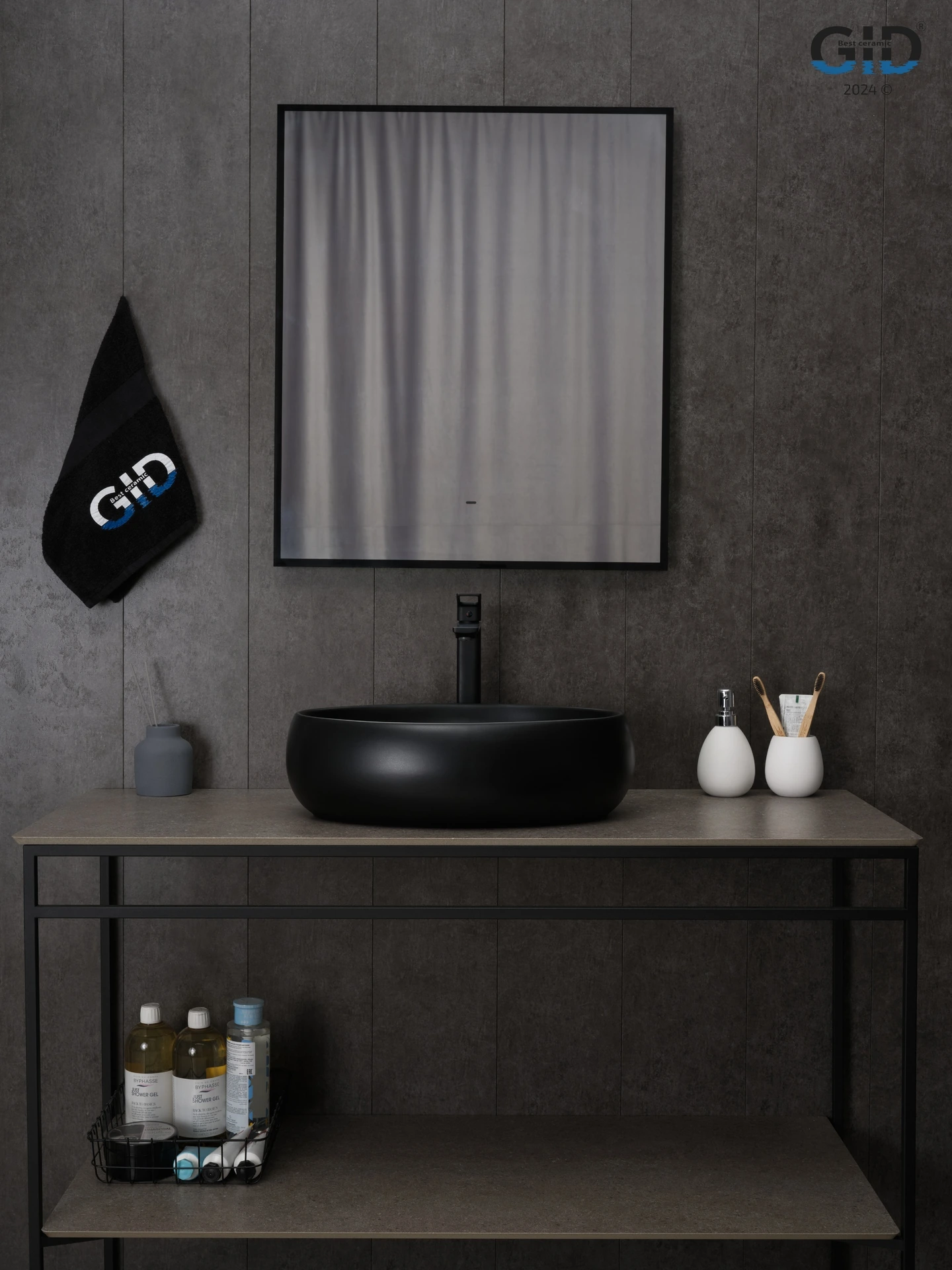 —Раковина керамическая Gid Lago 53372 50х30 накладная цвет черный без отверстий под смеситель