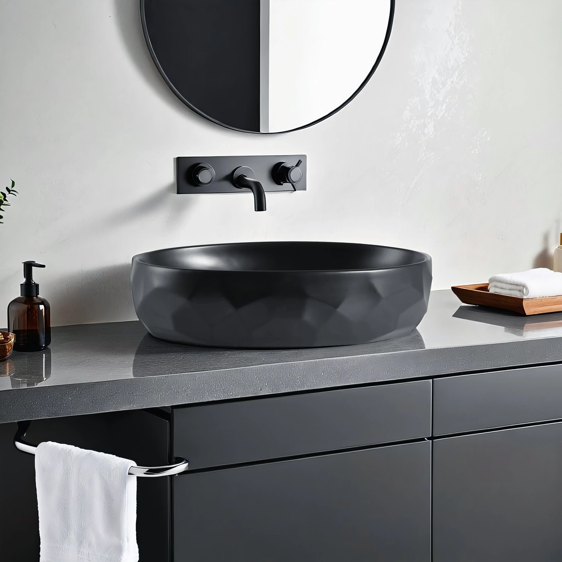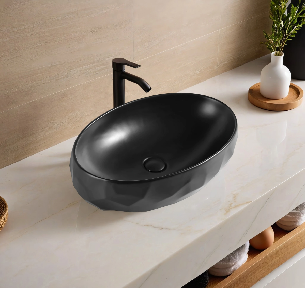 —Раковина керамическая Gid Lago 53385 60х40 накладная цвет черный без отверстий под смеситель